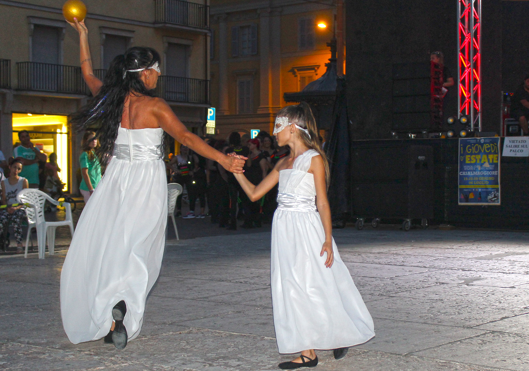 Schema classico e collaudato quello di quest’anno: spettacolo in piazza Garibaldi (il primo giovedì era stata Gymnica 2009 con tutte le sue bambine e genitori e parenti annessi al seguito, questo giovedì è toccato a Dance Academy che di piccole atlete ne ha un po’ meno), sfilata moda bimbi in piazza Turati, attività ginnica in via Cavour con Elisa Zani, bancarelle varie in piazza e nelle vie poi, dalle 23, disco music in piazza Garibaldi.