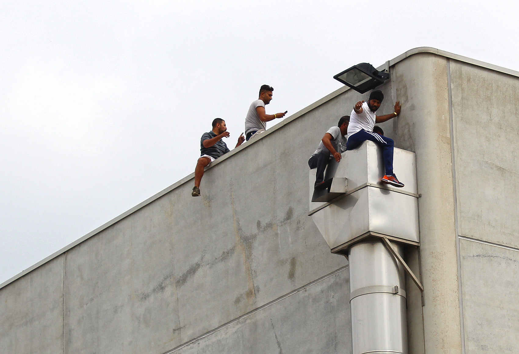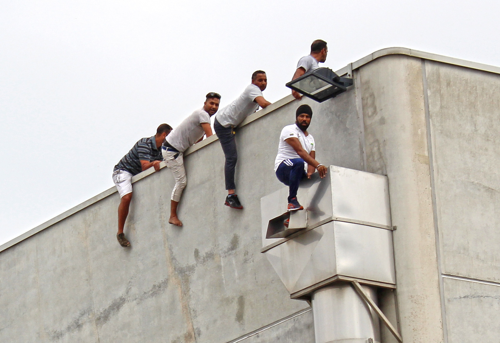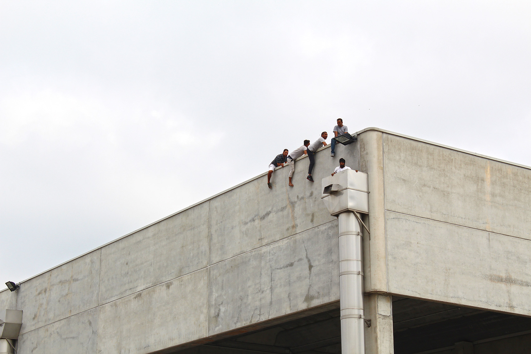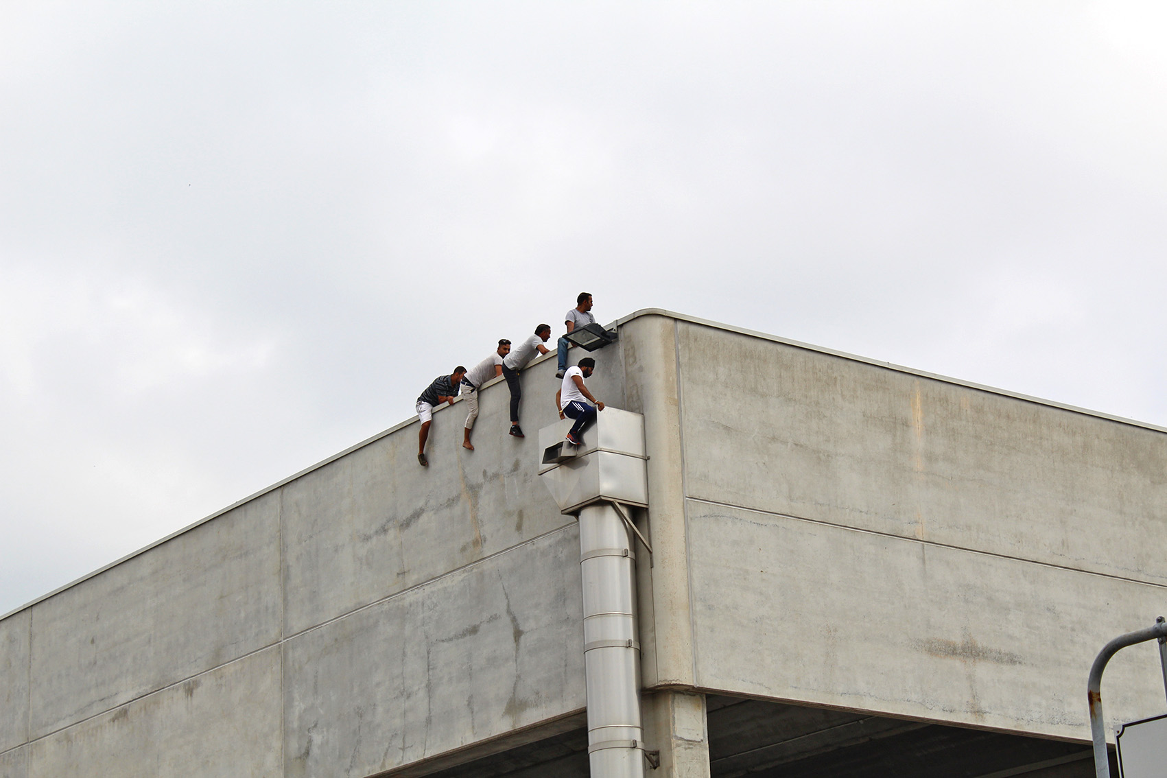 AGGIORNAMENTO ORE 13.50 – Acqua tirata su con una corda ed un uncino, ma la situazione rischia di trascinarsi a lungo. Difficile capire quanti siano. Dieci, quindici persone pronte a gesti estremi se qualcuno tenterà di avvicinarsi. E l’incidente serio lo si è rischiato davvero questa mattina poco dopo le 11 quando, per motivi in corso d’accertamento, qualcuno si è portato sul tetto. Alla vista dell’estraneo tre ex operai facchini (come si vede nella fotogallery) si sono calati nel tubo ancorato alla struttura, minacciando di lasciarsi cadere. L’atmosfera, sino ad allora accettabile, si è fatta infuocata. Gli altri operai giù hanno forzato il cancello, qualcuno urlava che se fosse morto qualcuno di loro, avrebbe dato fuoco alla fabbrica. Altissima tensione sino a quando anche grazie ai carabinieri (che non ne sapevano nulla dell’uomo sul tetto) si è riportata la calma. Gli operai non scenderanno sino a che non verrà loro data la mensilità sospesa e trovata una soluzione per tutti. I carabinieri stanno vegliando sul luogo insieme alla questura. La situazione è di calma apparente ma basta poco per tornare a respirare l’alta tensione. Prerogativa fondamentale adesso è quella di evitare incidenti.