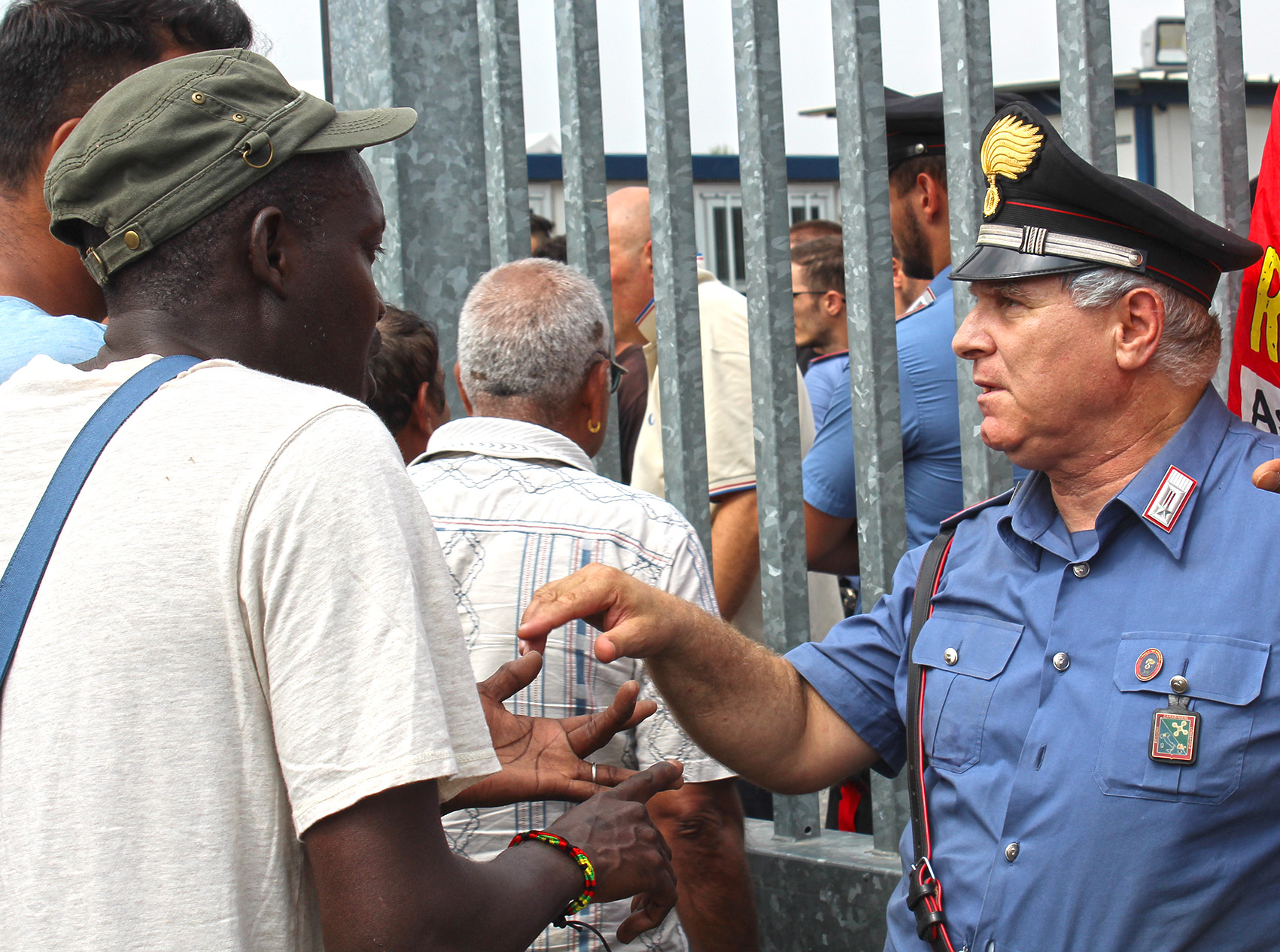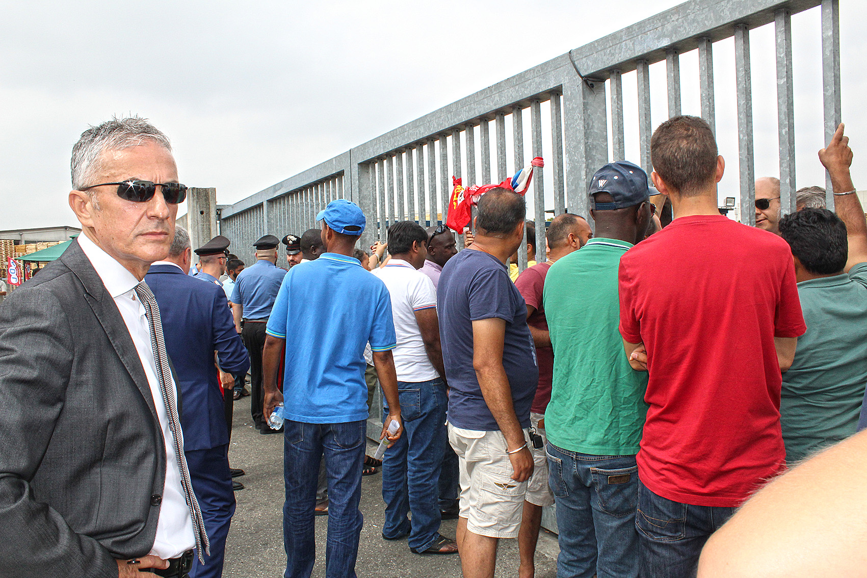 AGGIORNAMENTO ORE 14.30 – I temuti incidenti si stanno verificando: la situazione è precipitata con l’arrivo della squadra mobile in tenuta antisommossa, che sta cercando di spostare i manifestanti davanti ai cancelli, liberando l’accesso. Alcuni manifestanti sono rimasti a terra. Tensione ai massimi livelli. Tre persone sarebbero state portate in ospedale a causa degli scontri, anche se i contusi negli scontri con il reparto mobile sarebbero di più.