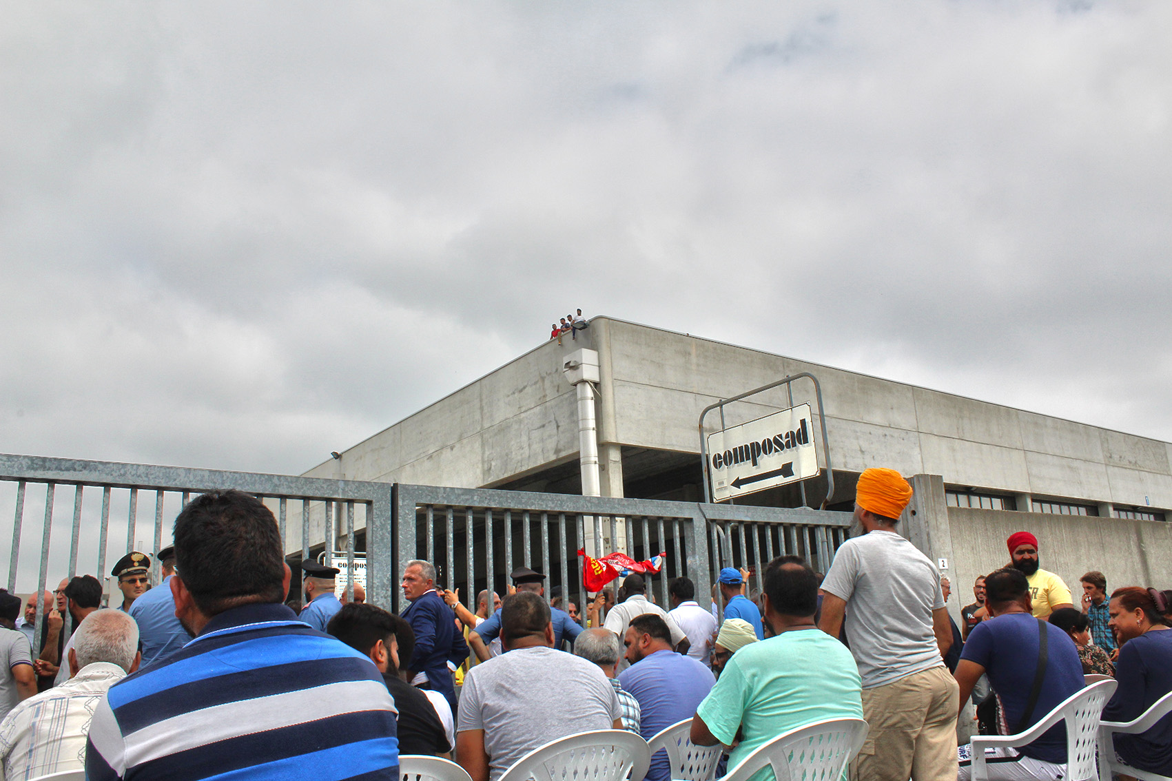 Composad, torna la tensione: una decina di operai sul tetto Lacrimogeni, caos, traffico ko