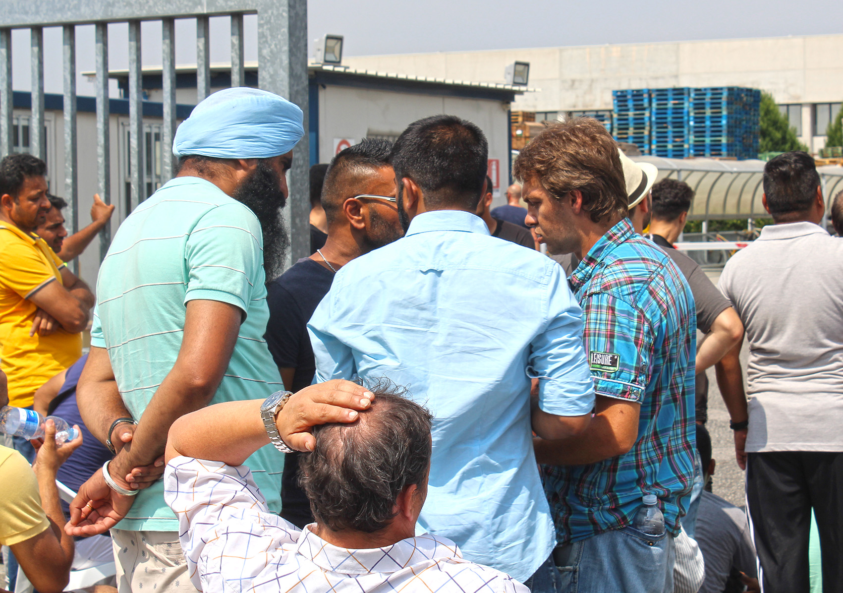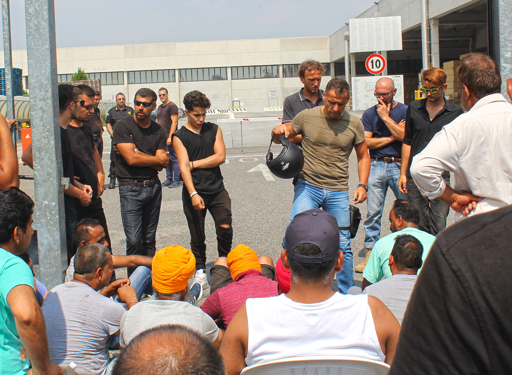 AGGIORNAMENTO ORE 11 – Attimi di panico in questo momento perché due operai stanno minacciando di lanciarsi nel vuoto. I compagni aprono con la forza i cancelli entrando nel cortile della azienda. Un indiano grida: “Se muore uno di noi bruciamo la fabbrica!”.