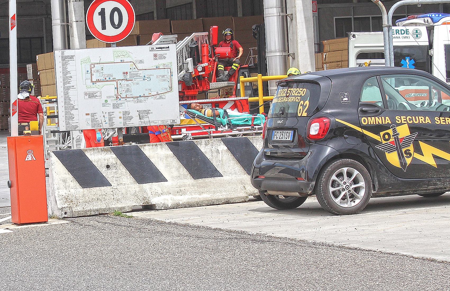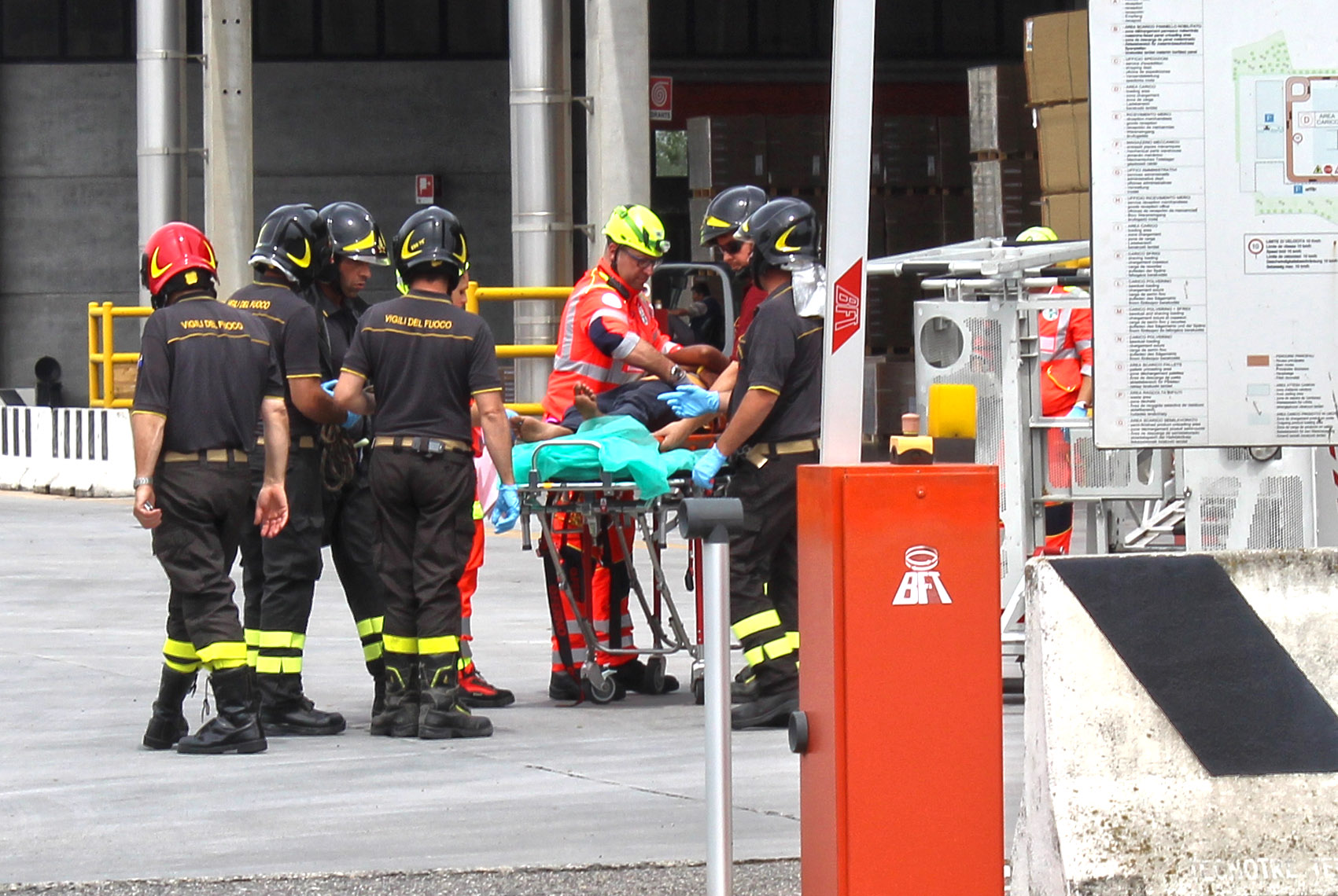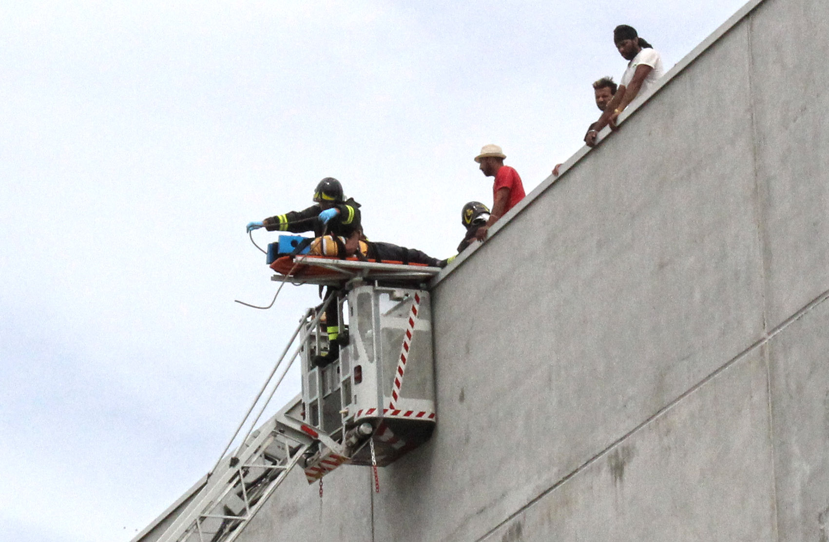 Operaio Viadana Facchini soccorso, e sul tetto Composad restano in sei