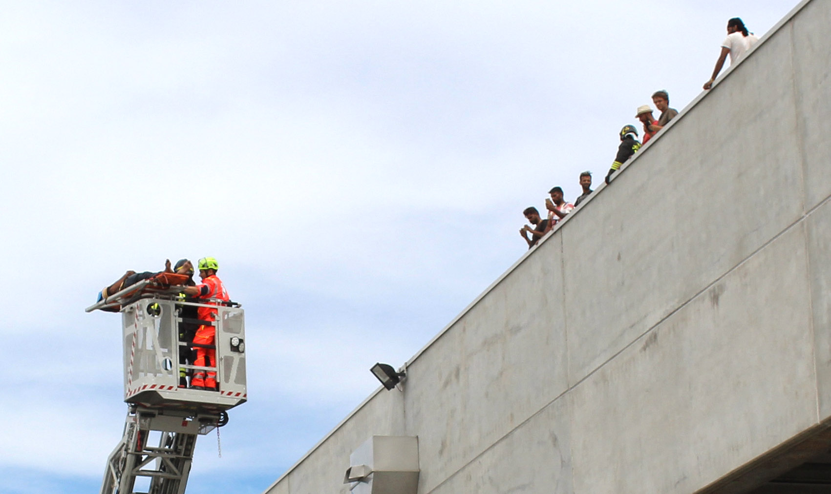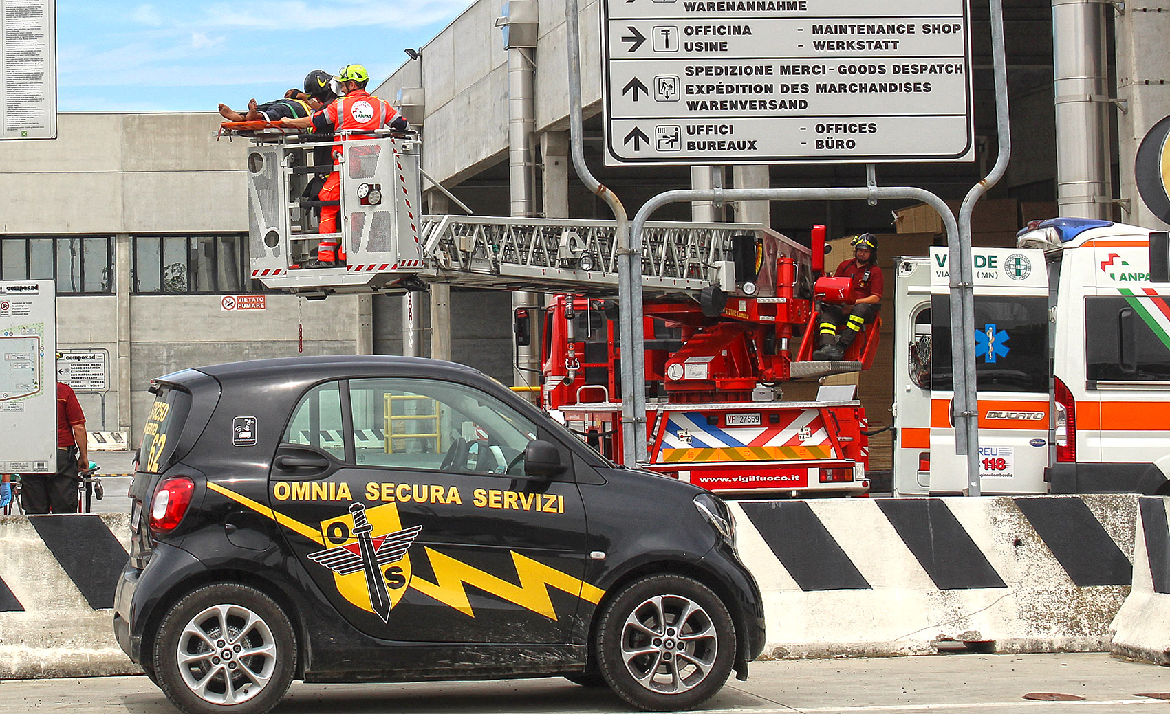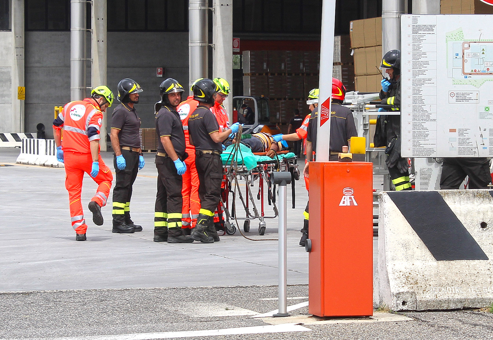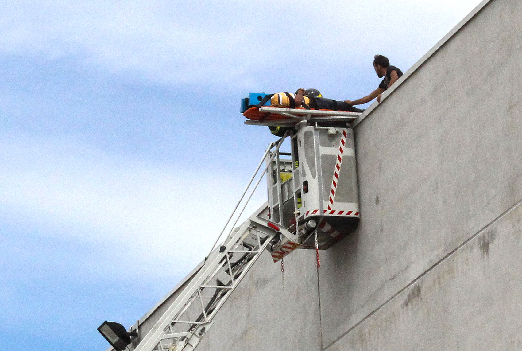 Operaio Viadana Facchini soccorso, e sul tetto Composad restano in sei