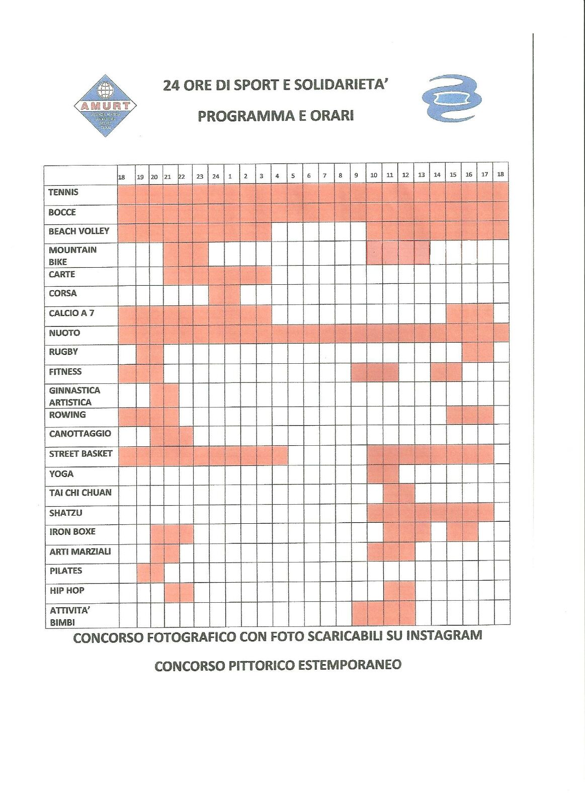 Curiosità: i tre sport che copriranno l’intero arco delle 24 ore saranno il tennis, il nuoto e le bocce. Gli altri si susseguiranno nei vari orari fissati. L’intento di tutti è bissare il successo dell’anno scorso e superarlo. Le preiscrizioni lasciano presagire che pure il 2017 sarà un anno straordinario. Un anno da record: di sport e di solidarietà legata al territorio.