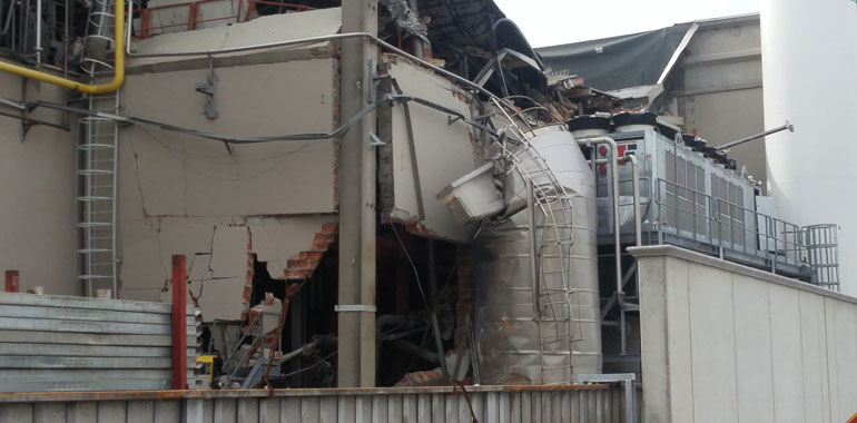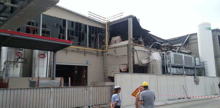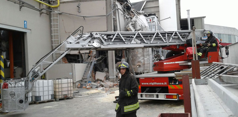 Non si conoscono ancora con certezza i motivi dell'esplosione, ma a "saltare" è stato un impianto di raffreddamento Il sindaco Baruffaldi, subito sul posto, ha escluso rischi per la salute dei cittadini. Due feriti non gravi. Paura dopo il boato tra i residenti nella zona. FOTOGALLERY