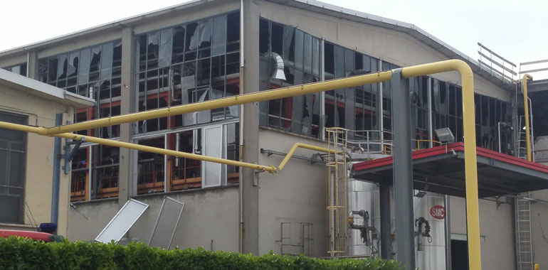 POMPONESCO – Un boato, una grossa esplosione: questo i testimoni raccontano di avere sentito giovedì mattina attorno alle 7.10 da via delle Industrie, presso la Chimica Pomponesco. Ad esplodere sarebbe stato un impianto contenente acqua per il raffreddamento, probabilmente per il malfunzionamento di una valvola. Il tutto è partito dalla parte inferiore dell’edificio: il botto ha scardinato un pilastro, provocando un cedimento di parte del capannone alcune vetrate sono andate in frantumi e i vetri infranti sono stati come “sparati” a diversi metri di distanza. Il botto peraltro sarebbe stato sentito anche in paese, tanto che alcuni cittadini hanno temuto si trattasse di un terremoto.