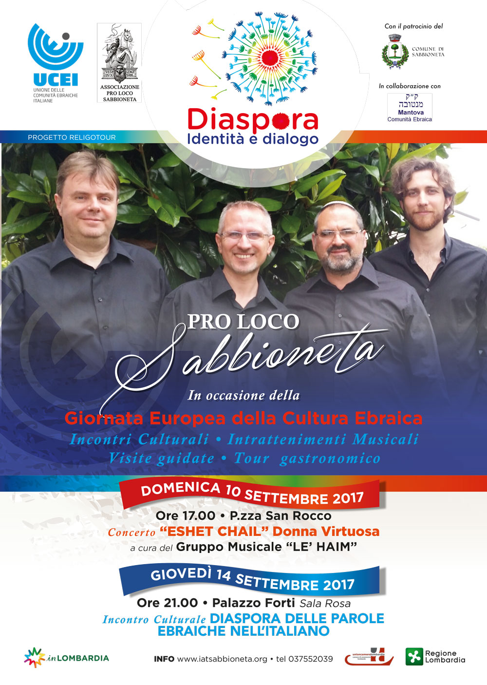 La Giornata della Cultura Ebraica, la cui edizione 2017 ha come tema “Diaspora: Identità e dialogo”, è la manifestazione europea nata nel 2000 allo scopo di “aprire le porte” dei luoghi ebraici, per far conoscere le tradizioni e le usanze, il patrimonio storico, artistico e architettonico dell’ebraismo europeo, per abbattere i pregiudizi e favorire una cultura dello scambio, dell’accoglienza e del rispetto per ogni diversità. Un appuntamento importante, in un periodo nel quale la necessità di costruire un dialogo tra le fedi è sempre più incalzante.