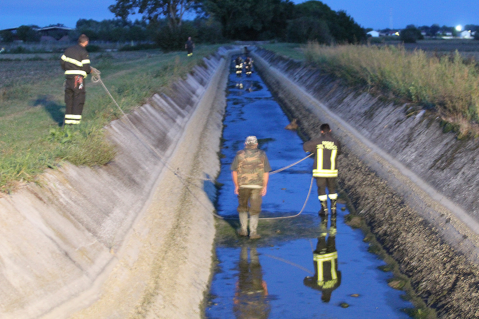 L’animale, spaventato ha cercato di evitare prima la stessa Alice Ferrari e poi gli uomini in divisa calatisi con una corda all’interno del manufatto dalle sponde in cemento. Ha pure cercato più volte di guadagnare i campi senza fortuna. Difficile senza attrezzatura specifica, catturarlo e liberarlo. Alle operazioni di salvataggio ha partecipato, costeggiando il canale a bordo del suo quad Armando dell’Acma.