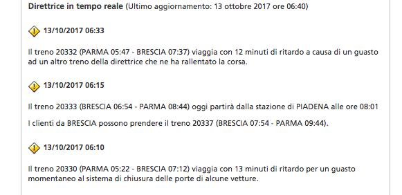 Ilare per certi versi anche la proposta alternativa “I clienti da Brescia possono prendere il 20337”. Peccato che sia un treno che parte e arriva un’ora dopo di quello spostato, come se i pendolari potessero spostare gli orari dei loro impegni a loro piacimento.