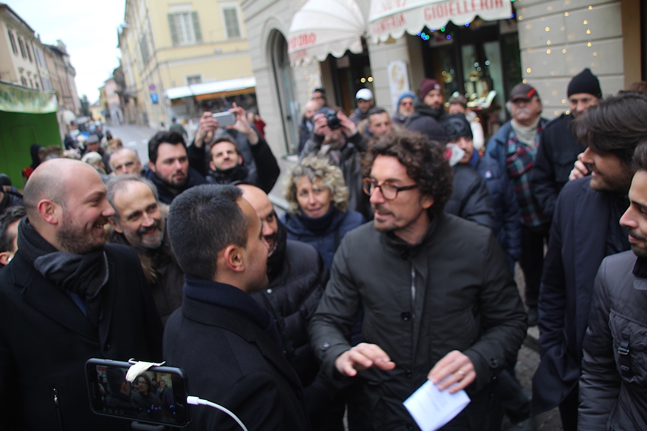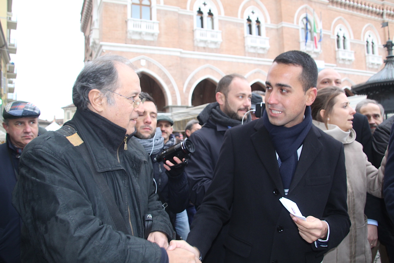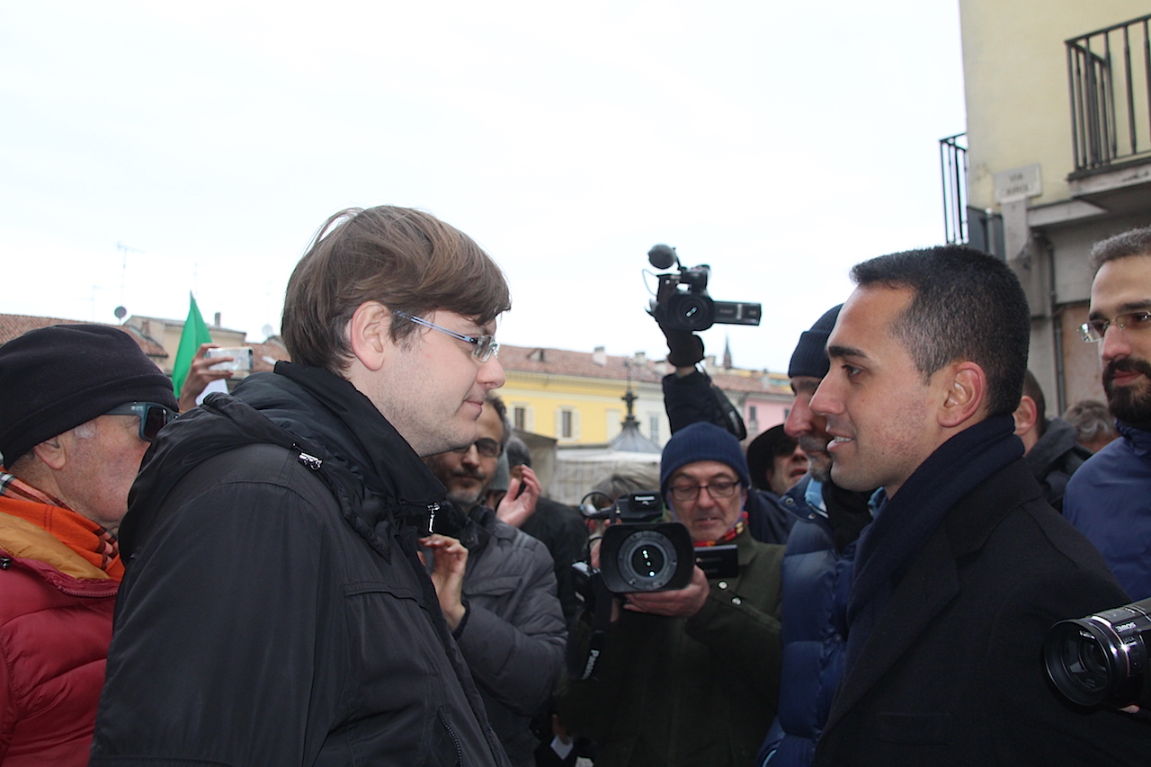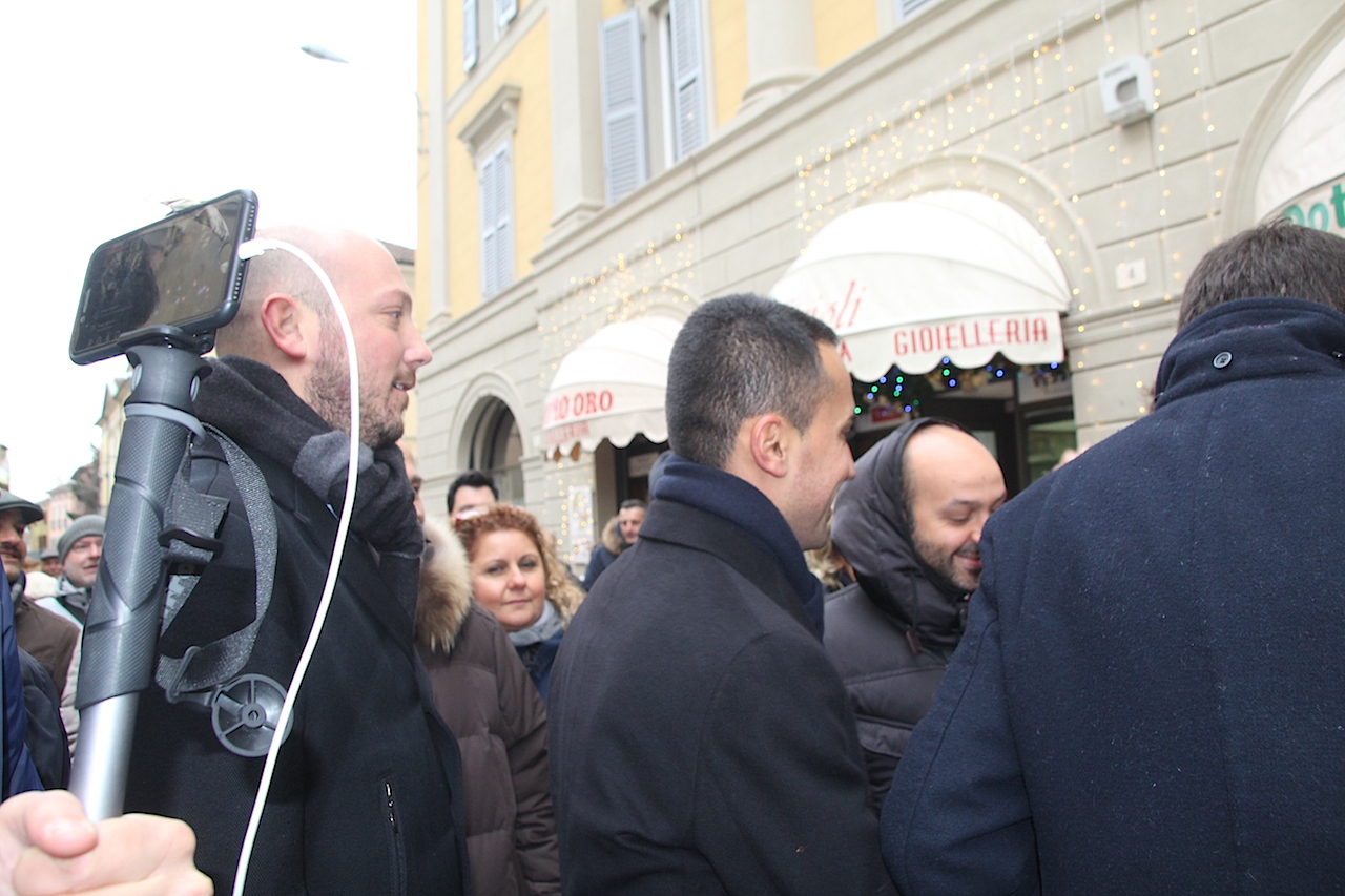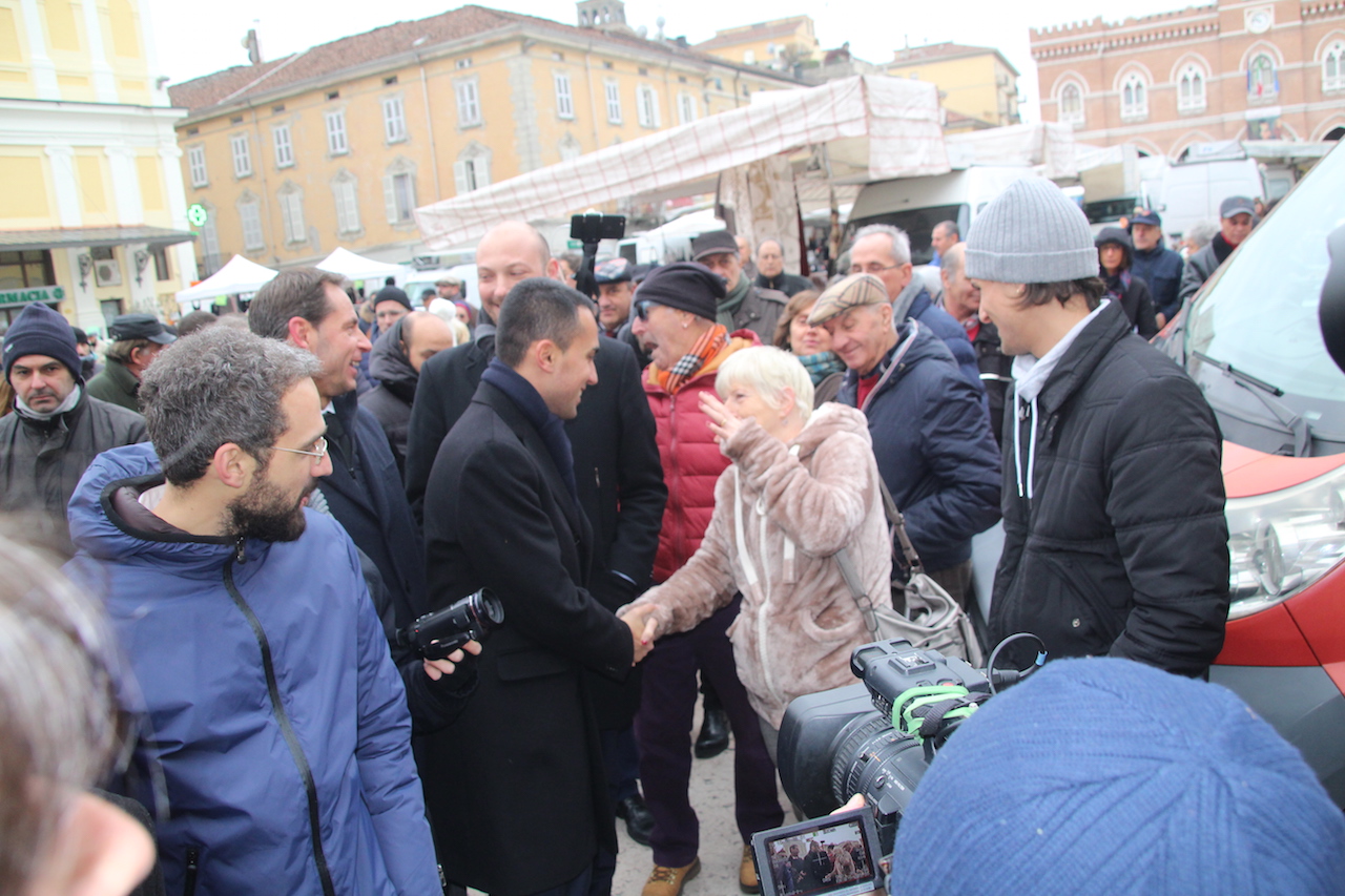Luigi Di Maio, in piazza Garibaldi, ha dapprima incontrato il sindaco Filippo Bongiovanni per un breve saluto, garantendo il suo pieno appoggio per la dichiarazione di stato d’emergenza, e poi ha fatto il giro completo della piazza tra la gente fermandosi a lungo a parlare con Valter Cavalli e Mimma Vignoli del neonato Distretto Casalasco dell’Oglio Po di produzione biologica. In piazza ha avuto modo anche di confrontarsi con un portatore d’handicap e con tutti coloro che lo hanno fermato, anche e solo per un saluto. Il comitato Ambientalista ha avuto modo di consegnargli tutta la documentazione sulla TiBre Ferroviaria e la foto di rito con i militanti al banchetto sotto la piazza.