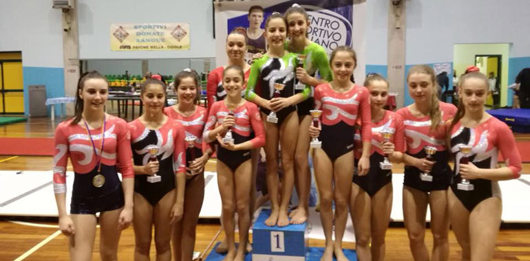 Nelle Ragazze Super A vince Serena Ghizzardi (3° al corpo libero, 2° trave, 2° volteggio e 1° a parallele), al secondo posto Sofia Pelizzoni ( 1° al corpo libero, 1° trave, 4° a parallele), al terzo Eleonora Bianchi ( 5° al corpo libero, 4° trave, 4° volteggio e 3° a parallele), al quarto Jamie Ballarini (2° parallele). Nelle Junior super A 2° posto per Federica Pelizzoni e 4° per Gaia Marino. La categoria senior super A è stata vinta da Federica Tascarella