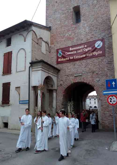 CANNETO SULL’OGLIO – Folta partecipazione questa mattina alla funzione solenne delle 10.30, nel segno della tradizione della Domenica delle Palme. Don Alfredo Rocca, che domenica vivrà la sua prima Pasqua cannetese, ha guidato la comunità di fedeli nella cerimonia che ha visto prima la benedizione dell’ulivo sul sagrato della Chiesa del Carmine e da qui la processione per via Garibaldi fino alla Chiesa Parrocchiale. Alla funzione hanno partecipato attivamente molti bambini e ragazzi del paese. A questi ultimi, al termine della messa, è stato consegnato il messaggio di Papa Francesco per la Giornata Mondiale della Gioventù. Di seguito il programma delle attività parrocchiali della settimana e alcune foto della funzione di questa mattina: