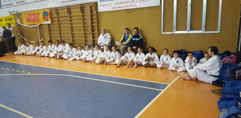 Grande evento ad elevato scopo benefico è stato il “Gioca-Gin 2018”, svoltosi domenica 25 febbraio presso il palazzetto dello sport Baslenga di Casalmaggiore organizzato come sempre dalla UISP di Cremona, in occasione della raccolta fondi a favore dei ragazzi della Casa Giardino di suor Maria Buongiorno di Casalmaggiore; gli atleti giallo/blu hanno intrattenuto il numeroso pubblico presente, con una bellissima esibizione che ha spaziato dall’attività motoria di base, ai Khion, fino ai Kata a squadre.
