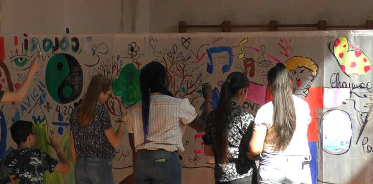 Con una formula testata lo scorso anno e, proprio perché di successo, ripetuta: quella di un turn over di gruppi che, ad ogni trillo della campanella, cambiassero attività e seguissero i dettami delle diverse associazioni. In questo modo tutti fanno tutto e nessuno resta escluso, potendo anzi provare ciascuna attività, chiarendo soprattutto a se stesso quale tra le proposte offerte sia la più consona alle proprie attitudini e desideri. E allora al Sanfelice si balla la break dance, oppure la danza un po’ più classica, così come si impara a dipingere, nella forma di un murales improvvisato in palestra; si studia la mimica e si mandano messaggi mediante la fisicità del proprio corpo, utilizzato a dovere come strumento per parlare al prossimo e al pubblico.