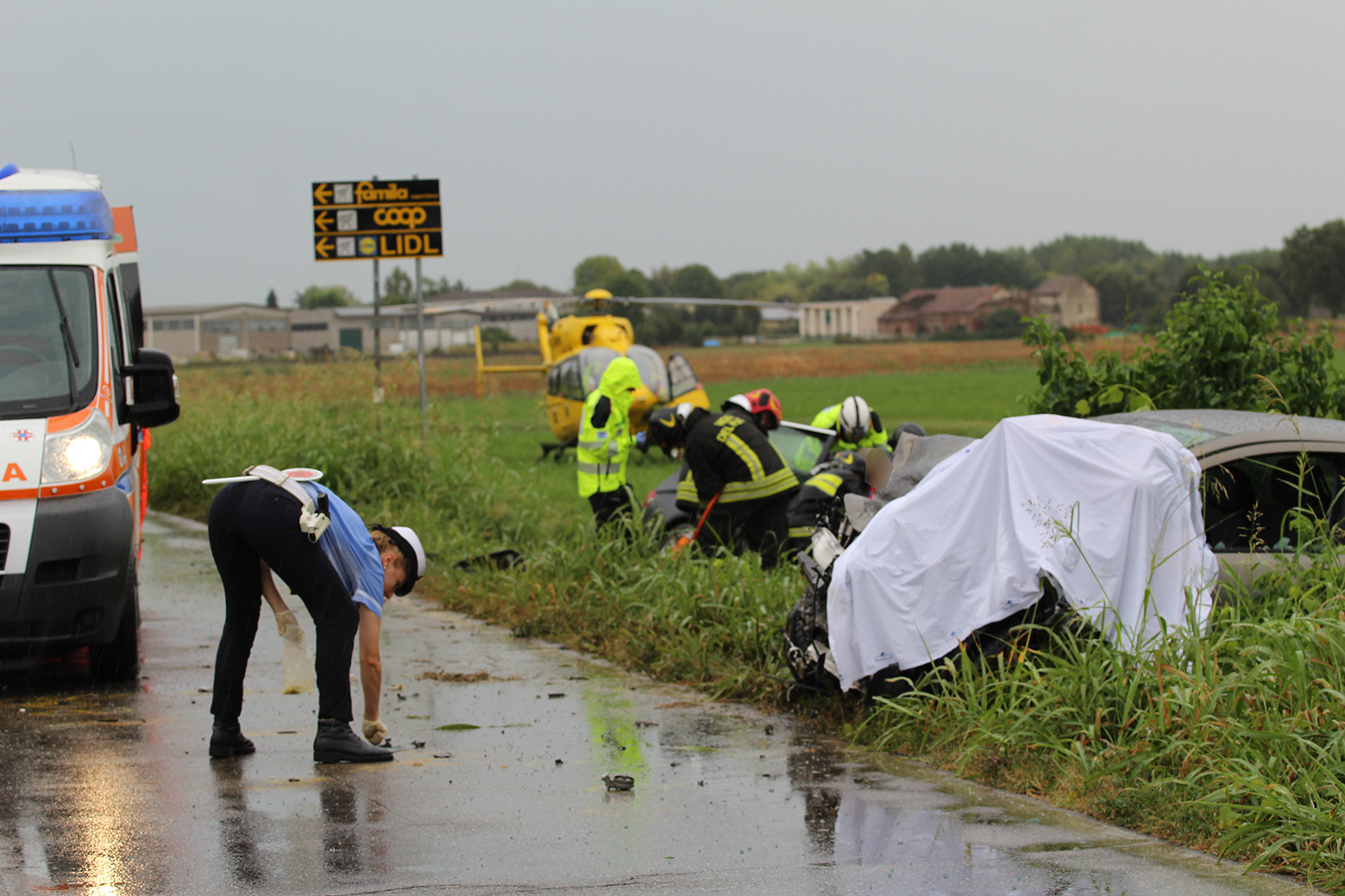 Lo schianto è stato terribile: l’Opel Corsa è andata per metà completamente distrutta non lasciando scampo all’autista, morto sul colpo. La BMW (da qui la difficoltà nella ricostruzione del sinistro, ha preso il colpo da davanti su un fianco) semidistrutta si è posata su un lato della strada. Uno dei due uomini a bordo è morto sul colpo, l’altro era ancora in vita quando sono arrivati i soccorsi. Allertato anche l’Elisoccorso che giunto da Parma in brevissimo tempo e nonostante il temporale, è ripartito senza trasportare nessuno. L’unico ferito gravissimo infatti è deceduto mentre i sanitari stavano tentando di portarlo via dall’abitacolo della propria vettura.