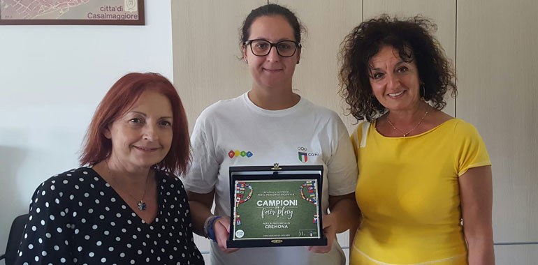 Un importante riconoscimento è andato poi alla dott.ssa Noemi Lena, che lo scorso 12 giugno ha ricevuto il premio Campioni di Fair Play 2018 provincia di Cremona, a seguito della partecipazione al Progetto Sport di Classe con la Scuola primaria di Vicomoscano dell’I.C. Diotti: un riconoscimento che vale molto, per un percorso di attività motoria che Noemi propone con grande entusiasmo e serietà ormai da 7 anni. Questa targa è il frutto del lavoro svolto con i ragazzi delle classi 4° e 5° e con le insegnanti Antonella Rizzi e Monica Martani: gli studenti si sono cimentati nella realizzazione di elaborati cartacei e digitali per promuovere la correttezza e la lealtà sportiva, passando dalla lotta al bullismo e da una sana e corretta alimentazione. Splendidi anche gli elaborati digitali sotto forma di fumetto dei ragazzi di 4°A, 4°B e 5°A della primaria di Vicobellignano, coadiuvati dalle maestre Federica Toscana, Giulia Scandiuzzi e Valentina Ferrari: tali elaborati fino all’ultimo si sono contesi il primato vinto poi da Vicomoscano. Un esempio di scuole “belle”, che molte altre dovrebbero prendere ad esempio.