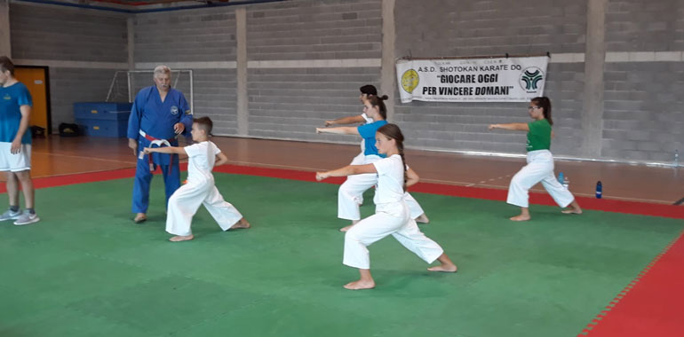 Concluso il Campus, per un nutrito gruppo di agonisti, gli allenamenti sono proseguiti anche durante i mesi di luglio e agosto, gettando le basi per nuovi progetti che a breve vedranno la realizzazione. Nell’occasione ricordiamo anche la dimostrazione di Karate, tenuta nella serata del 20 luglio, in occasione della festa di S.Margherita presso l’Oratorio di Vicoboneghisio. Una stagione sportiva che non è mai terminata, ma che ha visto l’avvio ufficiale lo scorso 4 settembre nei vari corsi nelle palestre di Casalmaggiore, Casalbellotto e Sabbioneta. Ultima iniziativa del team gialloblu è la Dote Shotokan, rivolta a tutti gli alunni delle scuole primarie e dell’infanzia che hanno aderito al Progetto C.O.N.I. “Karate gioco sport a Scuola”, promosso dall’A.S.D. Shotokan Karate Do e seguito dal Tecnico Federale Noemi Lena, per avvicinare nuovi talenti alla nostra attività. L’iniziativa proseguirà per tutta la stagione sportiva.