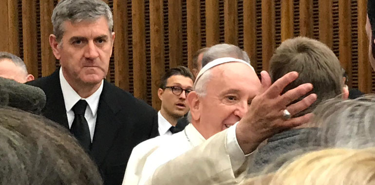 ROMA – Sabato scorso, 2 marzo, l’intera comunità Ail (Associazione Italiana contro le leucemie-linfomi e mieloma), con i volontari delle sue 81 sezioni provinciali, pazienti e familiari, medici e ricercatori, ha potuto incontrare papa Francesco a mezzogiorno in udienza generale in Sala Nervi, ribattezzata aula Paolo VI. Il folto gruppo era guidato dal presidente nazionale Sergio Amadori e dal direttore generale Francesco Gesualdi. Il 2019 è un anno importante per l’Ail, in quanto ricorre il 50° anniversario della fondazione. L’incontro con Papa Francesco da parte dei 6mila volontari ha rappresentato l’occasione per ripercorrere le tappe che hanno portato Ail a crescere e diventare punto di riferimento per i pazienti ematologici e le loro famiglie.