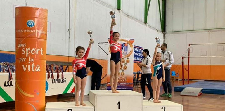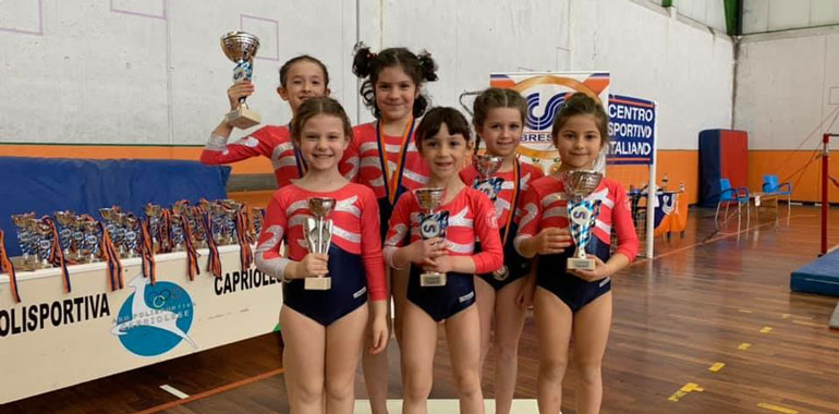 Allieve Super A: 2°Assoluta Gaia Storti e 1° Parallele, 3°Assoluta Martina Caleffi e 2° Trave, 6°Assoluta Lisa Parmiggiani e 3° Corpo Libero, Giulia Pacchioni è 2°Parallele e 4°Trave, 9°Gloria Lodi Rizzini.