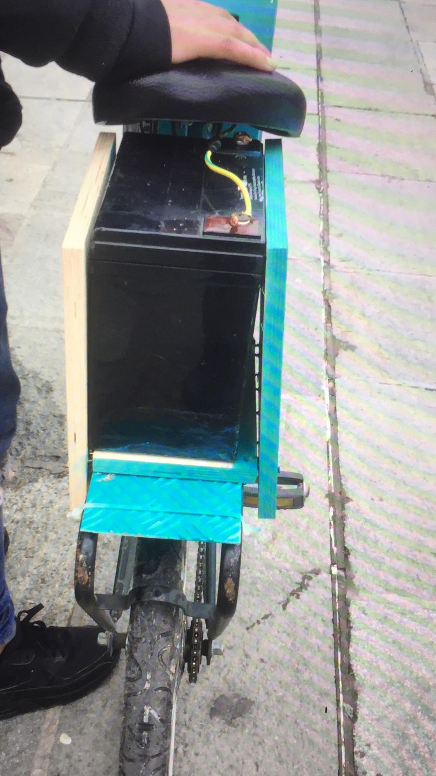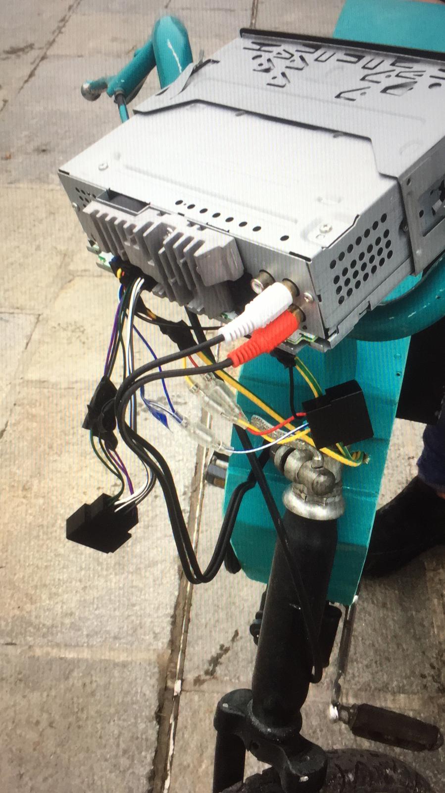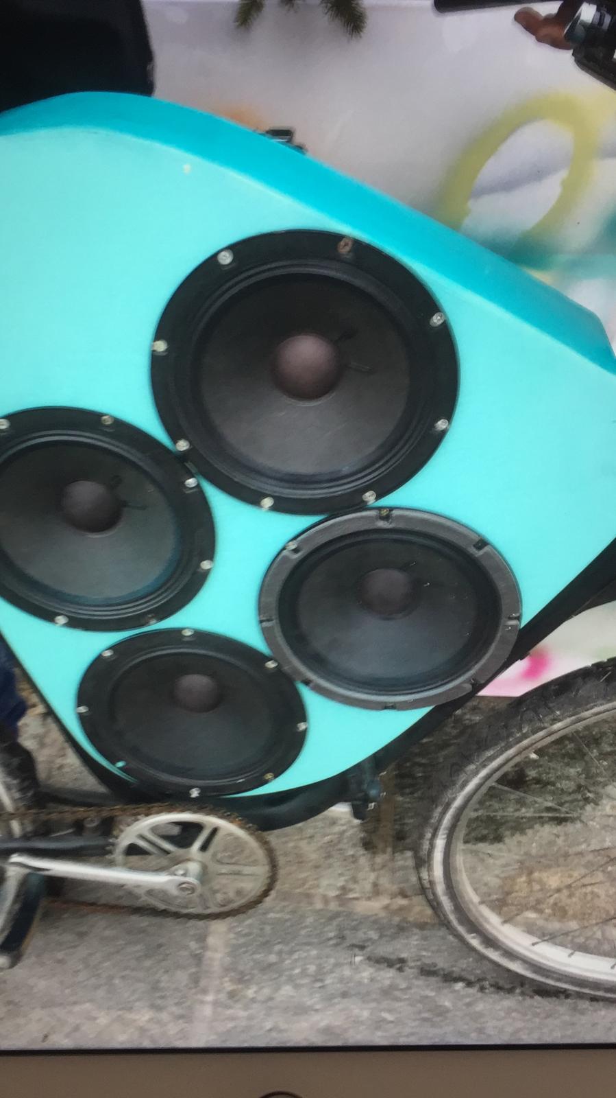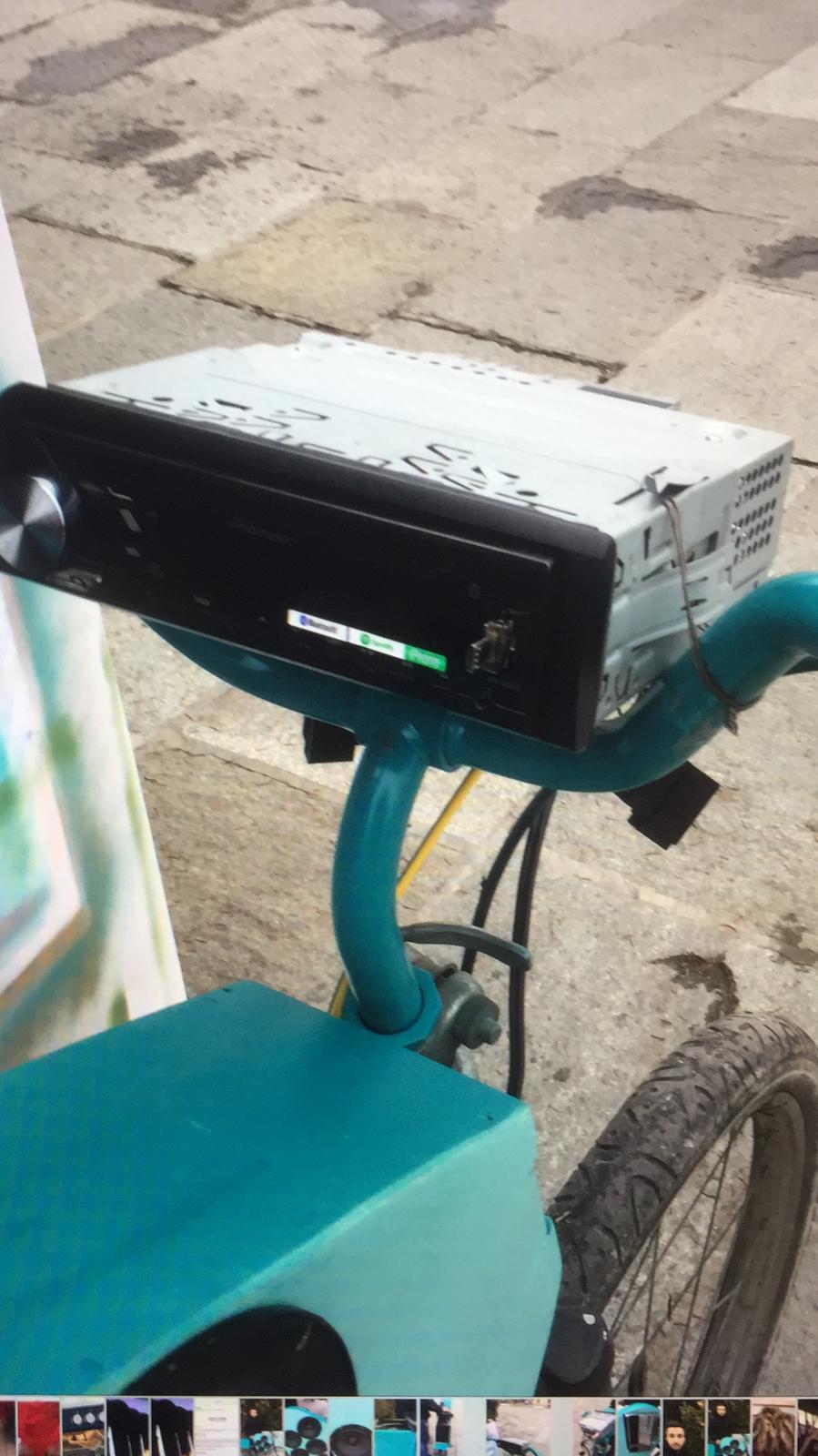Infatti, tre giorni dopo, progetto, prototipo e scheda tecnica, che qui riporto, erano già pronti: Assicelle di legno tagliate su misura per contenere batteria e casse, Batteria a gel 65 ampere – Amplificatore F4 380 audio system – 4 casse Faital Pro da 260 watt l’una – Autoradio Alpine dotato di AUX / USB / Bluetooth / carica smartphone – Bici da donna.