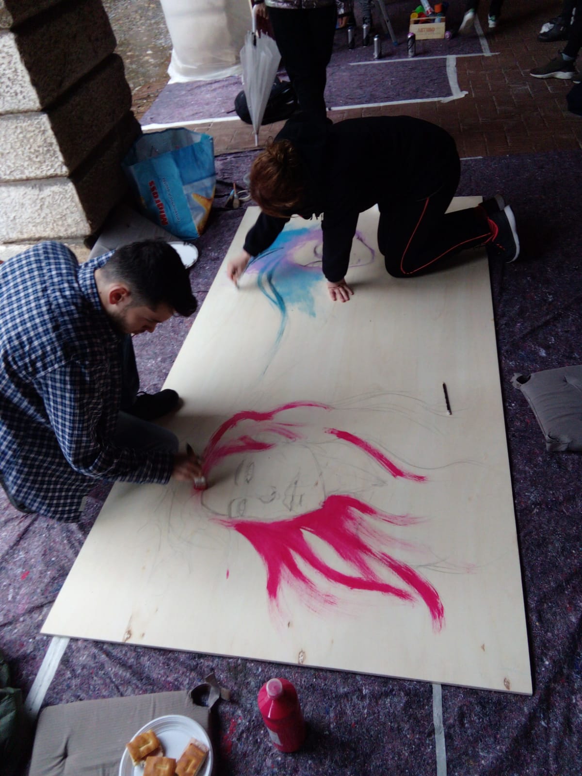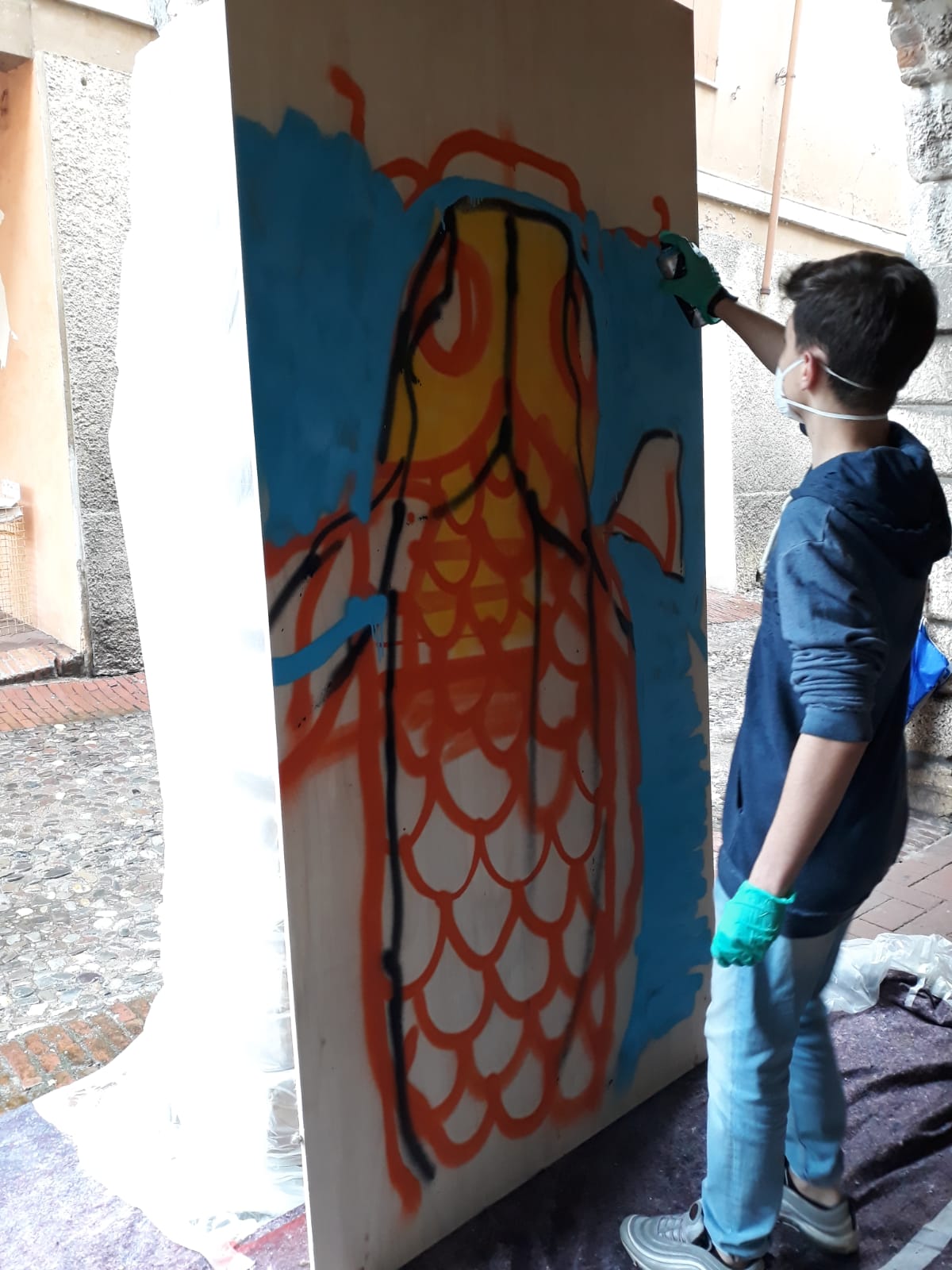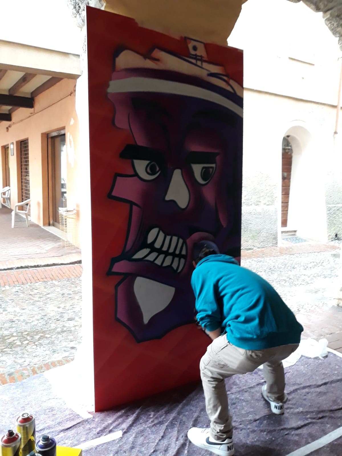 SABBIONETA – L’arte del writing è approdata a Sabbioneta in occasione dell’evento “La città degli artisti” giunta alla 9° edizione e organizzata dalla locale Pro Loco. I ragazzi del progetto E Poi Sabbioneta non si sono fermati nemmeno sotto la pioggia scrosciante. Grazie al progetto E Poi Sabbioneta (Bando volontariato 2018 – Regione Lombardia, fondazione Cariplo, CSV Lombardia sud) e alla cooperativa Nazareth centro diurno Giona, Stefano Delvò, educatore e writer, ha tenuto un corso di writing, forma artistica che ha incuriosito particolarmente gli adolescenti. Così, a fianco di pittori che utilizzano strumenti tradizionali, Sabbioneta ha potuto ammirare all’opera ragazzi che esprimono la propria personalità e la propria arte tramite bombolette e vernici spray.
