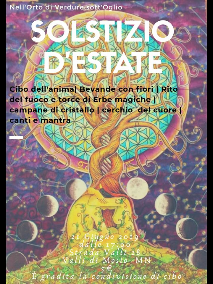 VALLI DI MOSIO (MN) – Festeggiare il solstizio, in armonia con la natura e con le persone. E’ la bella idea studiata da Vanessa Gandolfi (Verdure Sott’Oglio) che in armonia con la natura e con i frutti della terra vive da anni. “I festeggiamenti per questo giorno speciale – scrive Vanessa – avvengono dalla notte dei tempi, quando si dedicavano riti propiziatori agli Dei per ringraziarli e chiedere loro raccolti abbondanti. Oggi non è più così, ovviamente, ma il solstizio d’estate rimane un giorno magico e unico, in cui la luce batte il buio e annuncia l’arrivo della stagione più calda e solare”.