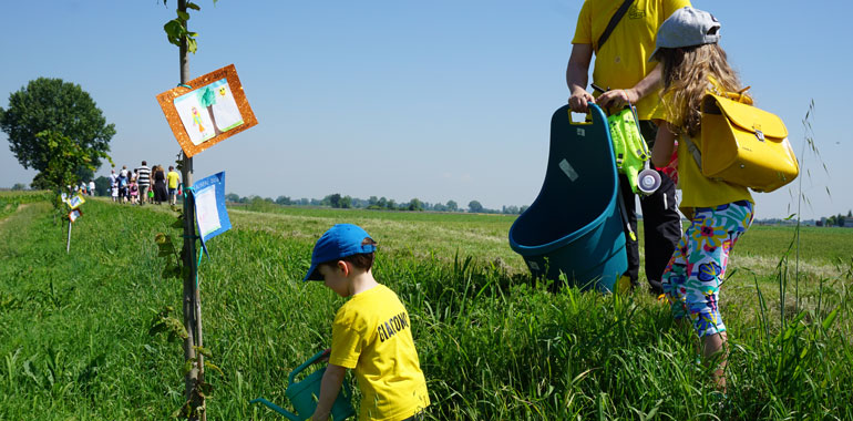 PONTETERRA (SABBIONETA) – Torna puntuale come ogni prima domenica di giugno. E come sempre regala sorrisi e allegria: è la Festa degli Alberi, promossa per il quarto anno di fila dalla scuola dell’infanzia Luigi Braga di Ponteterra, con i bambini della scuola stessa che piantano – sulle orme dei loro compagni degli anni precedenti – alberi lungo gli arginelli di Vespasiano Gonzaga, nella frazione sabbionetana.