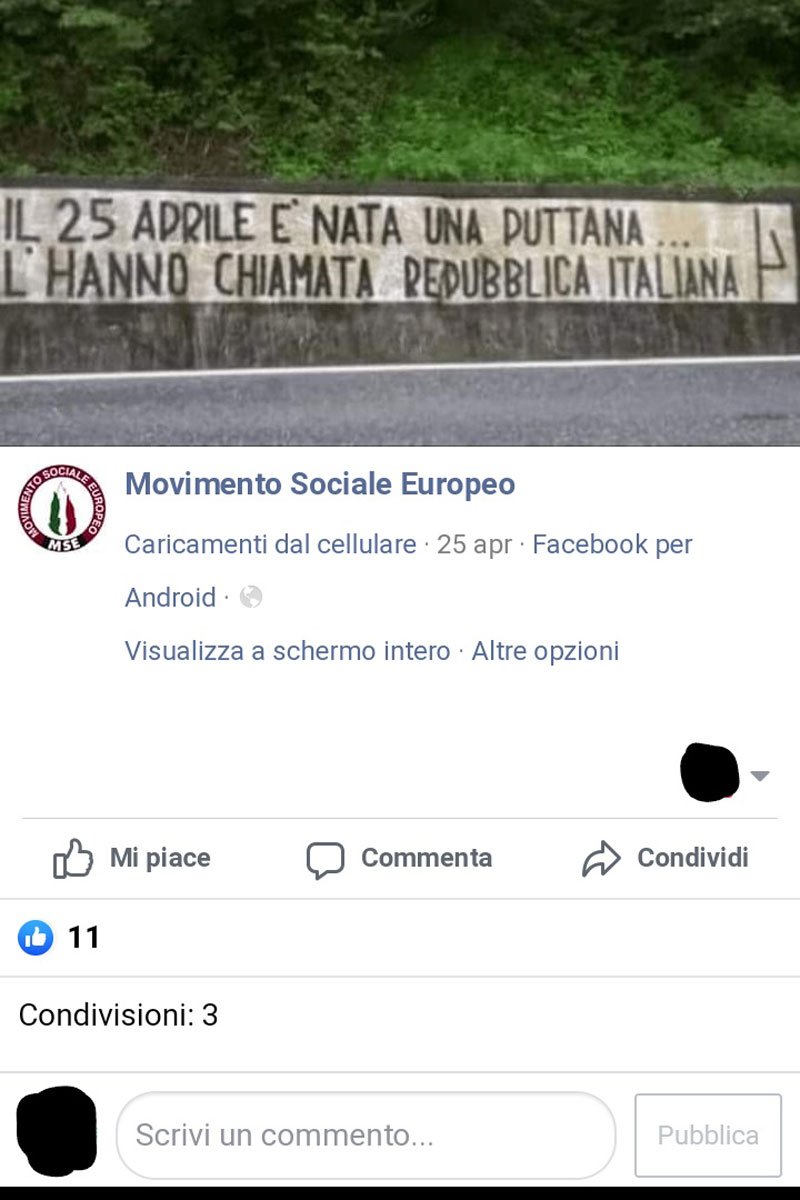 L’interrogazione passa poi dalla pubblicazione, come detto, di alcune immagini in cui i due movimenti sopra citati si congratulano con Priori per l’elezione a primo cittadino e, durante la campagna elettorale, lo sostengono apertamente. Alcune immagini mostrano slogan molto duri contro la Repubblica Italiana, oltre a riportare simboli chiaramente riconducibili al periodo del Ventennio Fascista. “Ricordiamo che nel corso del primo Consiglio comunale martedì 11 giugno – scrivono i consiglieri di minoranza – il sindaco Priori ha giurato fedeltà alla Costituzione Italiana, che rappresenta le istituzioni democratiche del nostro Paese e la Repubblica Italiana, e che la nostra Costituzione e la nostra Repubblica nascono dalla Resistenza e dalla Liberazione dal nazifascismo”.