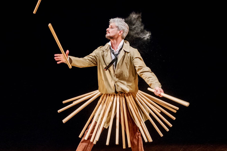 Dalla Catalogna arriva il clown Leandre, punta di diamante del mimo internazionale, divertente come Charlie Chaplin, poetico come Buster Keaton. In RIEN À DIRE Leandre mette in scena una casa senza muri, con solo quattro mobili e una porta; una casa piena di varchi verso l’assurdo, abitata da un solo personaggio, circondato da presenze, calzini volanti, piogge di ombrelli, regali inaspettati, pianoforti telepatici, demoni, sogni…