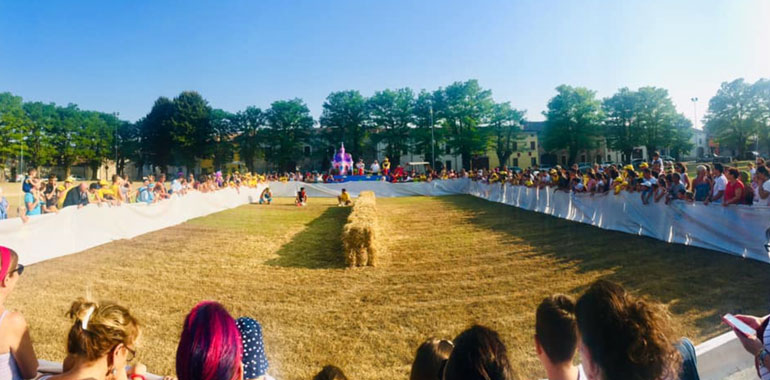 La corsa delle oche, appunto, dove i tre pennuti, ciascuno in rappresentanza di una delle tre contrade che compongono San Martino dall’Argine, devono correre sull’erba, compiendo tre giri di un percorso circolare, il tutto rispettando il benessere dell’animale (che infatti corre senza guinzaglio): vince ovviamente la prima oca (dunque contrada) arrivata. E il successo ha arriso al Carrobbio, in un tifo da stadio che si ripete ad ogni gara di questo genere.