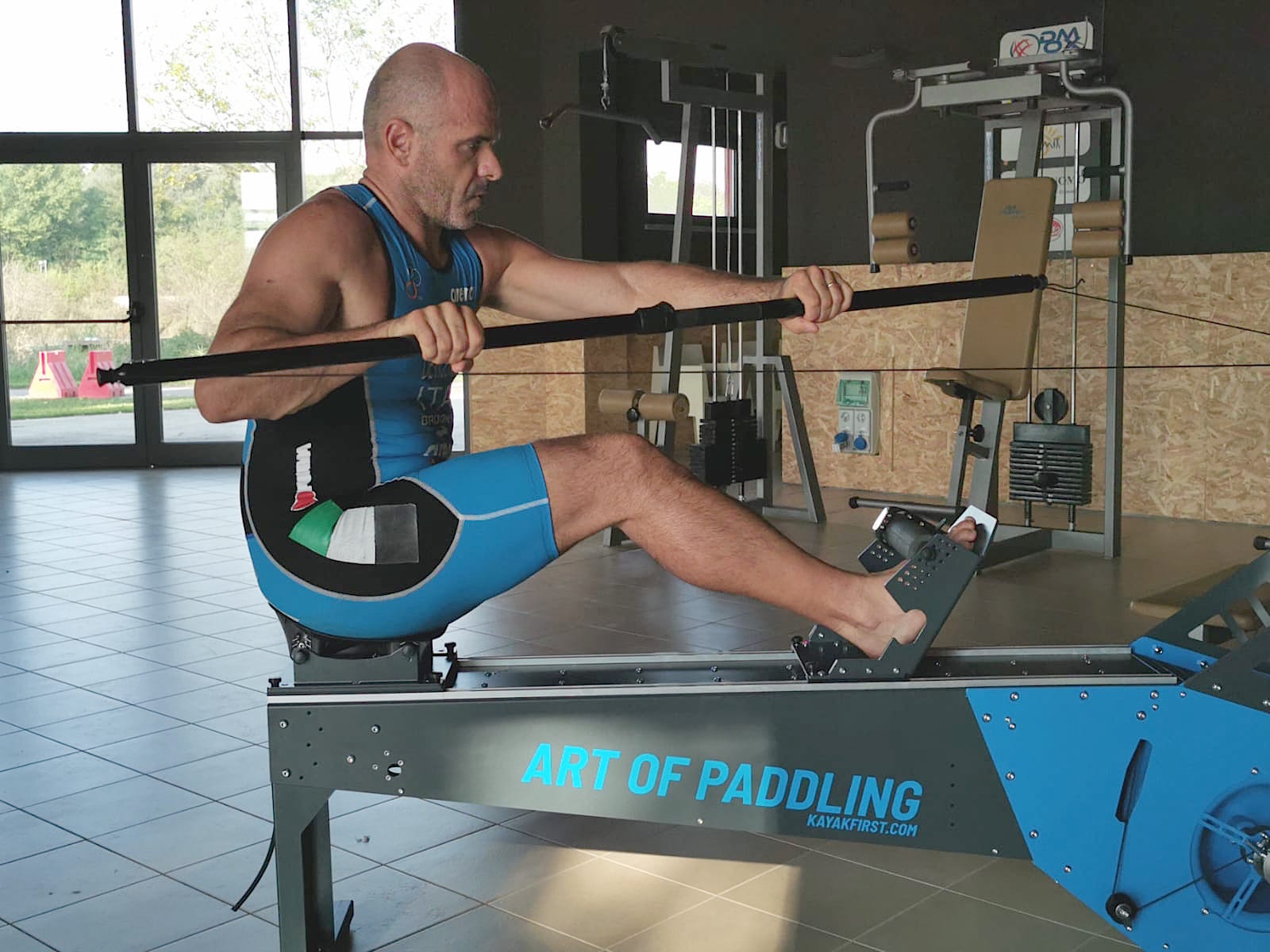 In attesa di avere la canoa giusta usa due canoe che pesano un terzo in più di quelle utilizzate adesso per le competizioni. E nonostante tutto riesce, grazie alla forza fisica e all’applicazione costante, a fare buoni tempi. “Il lavoro non mi spaventa – prosegue – devo ancora lavorare sul gesto tecnico e sugli automatismi. A Cremona mi alleno anche con la pagaiaremoergometro. Appena ne avrò le possibilità me ne acquisterò uno da tenere a casa per potermi allenare per più ore tutti i giorni. Sto adattando la mia muscolatura allo sforzo che richiede la pagaiata. Ho la fortuna che la parte superiore del corpo è preparata. A volte Franco mi chiede se sono stanco dopo un paio d’ore di allenamento. Ma la stanchezza non la sento e poi comunque ho sempre bisogno di portare il mio corpo all’estremo dello sforzo”.