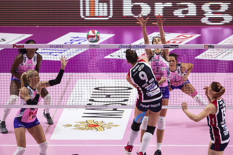 “Dopo l’infortunio di Cate – dice Ilaria Spirito libero Vbc Èpiù Pomì – è stato importante ritrovare il gioco di squadra perchè giocando da singoli si rischia. Solo trovando il gioco di squadra si può ripartire”. “Siamo partite contratte – dice Rossella Olivotto centrale Zanetti Bergamo – e abbiamo perso di lucidità, ci siamo ritrovate nel terzo e nel quarto set ma nel finale abbiamo perso di lucidità”.