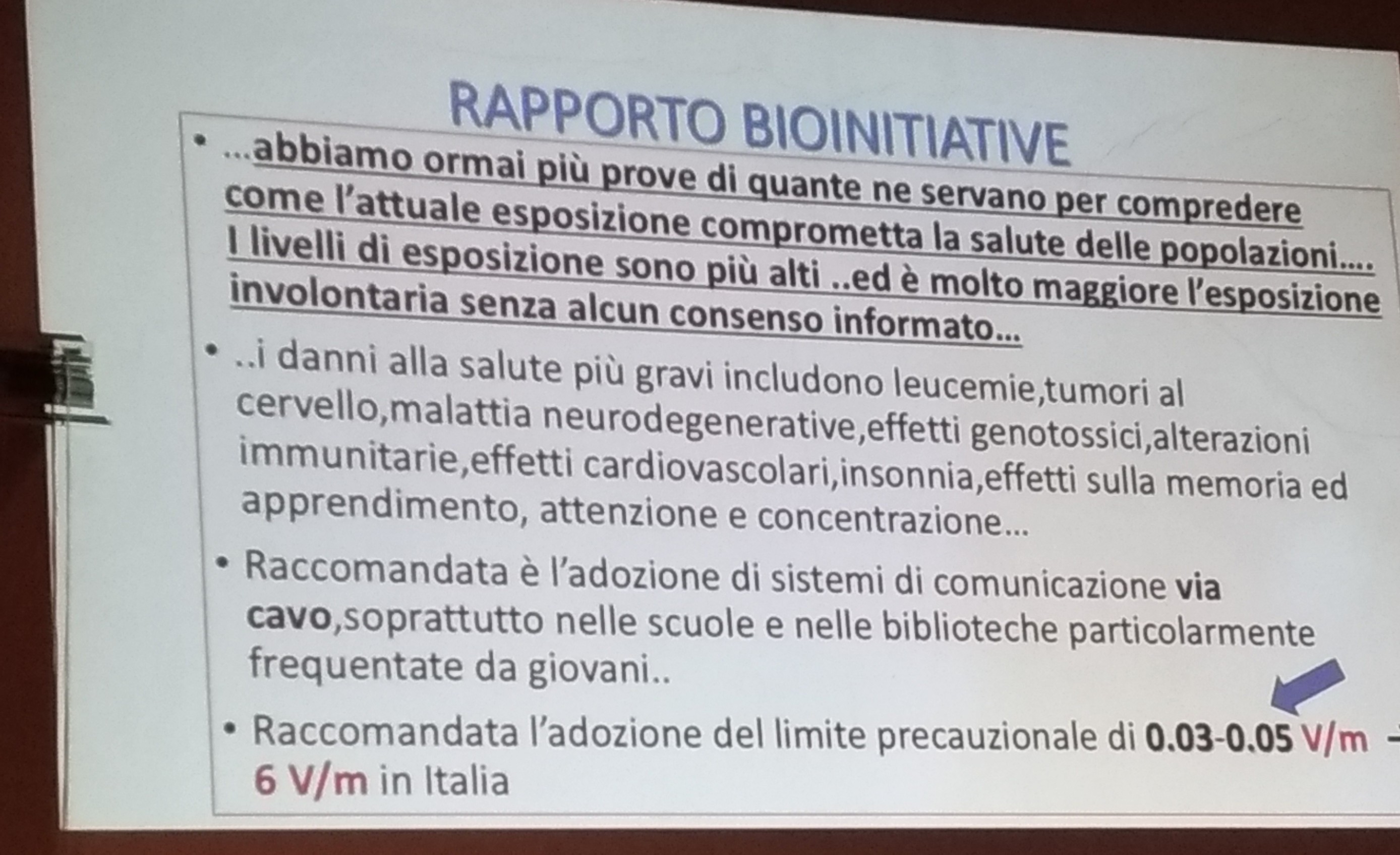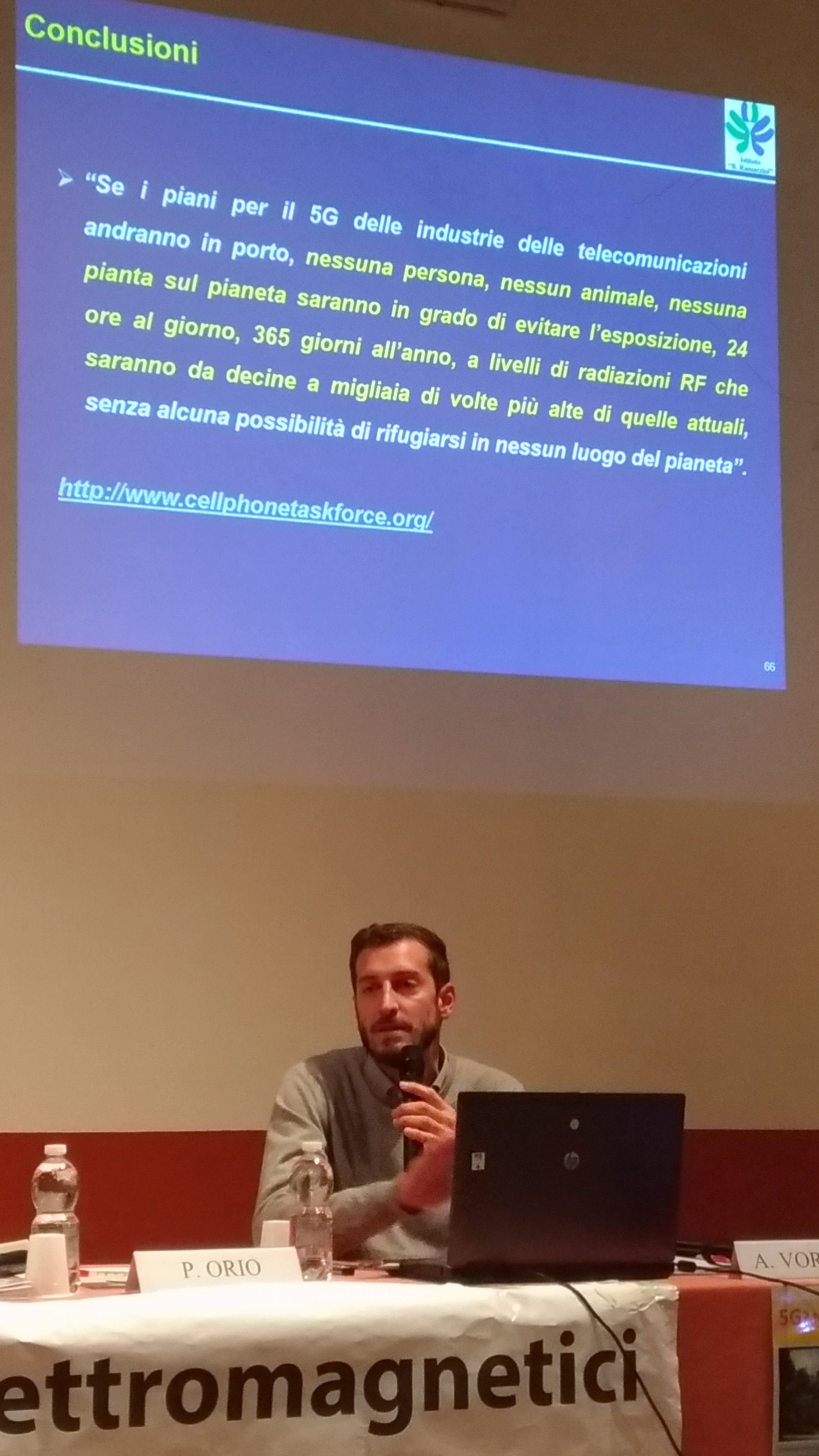 “Il sindaco è il primo responsabile della salute dei suoi cittadini, lo sappiamo – è stato spiegato – e con questo potere può opporsi alla sperimentazione del 5G, attuando il principio di cautela, previsto dai regolamenti”. Durante la serata sono stati citati i nomi dei paesi e città in Italia dove la sperimentazione è stata bloccata. Anche la Francia, da sempre garantista, non la permette. Infine è stata posta una domanda al pubblico: chi di voi sarebbe disposto ad accettare una cura medica sperimentale, senza nessuna garanzia, della quale non si conoscono gli effetti? In risposta un silenzio assordante…