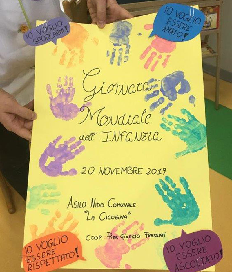 “… Lo sapevate che anche NOI abbiamo dei diritti? Ebbene sì! Diritto alla vita, diritto alla fantasia, diritto alle emozioni, diritto al gioco, diritto a sporcarci… Martedì 19 novembre 2019 alle ore 10,00 nel nostro Asilo Nido Comunale, per celebrare la ricorrenza della Giornata Internazionale dei Diritti dell’infanzia, abbiamo preparato una bellissima festa, fatta di colori e suoni. Per l’occasione abbiamo avuto come ospiti Nicolò Ficicchia, sindaco di Canneto sull’Oglio, Gianluca Bottarelli, assessore alla cultura, e Aldo Bina, Presidente della Cooperativa Piergiorgio Frassati di Canneto sull’Oglio.