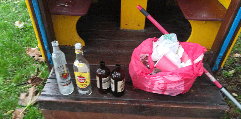 "In pieno centro si sentono liberi di vandalizzare un parco facendo un festino con vodka e birre, dopo settimane che spieghiamo a questi ragazzi che questa non è una porcilaia e che le casette sono per i bambini, adesso basta"