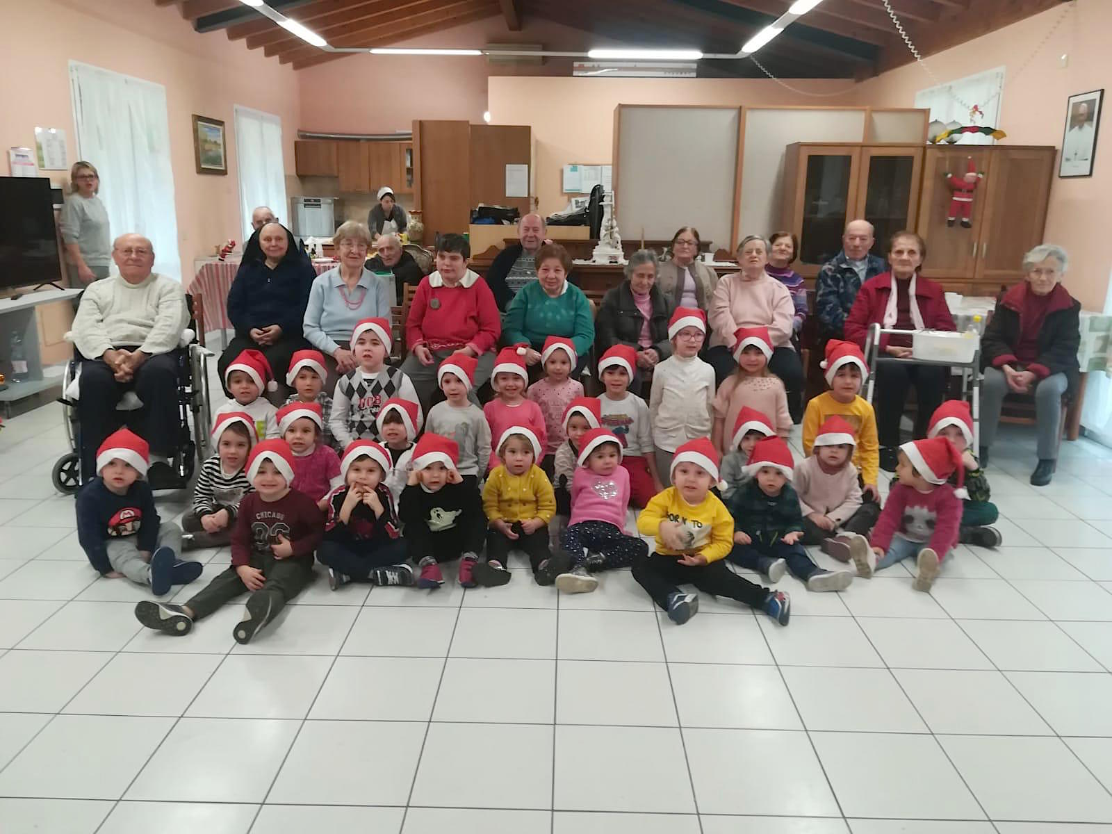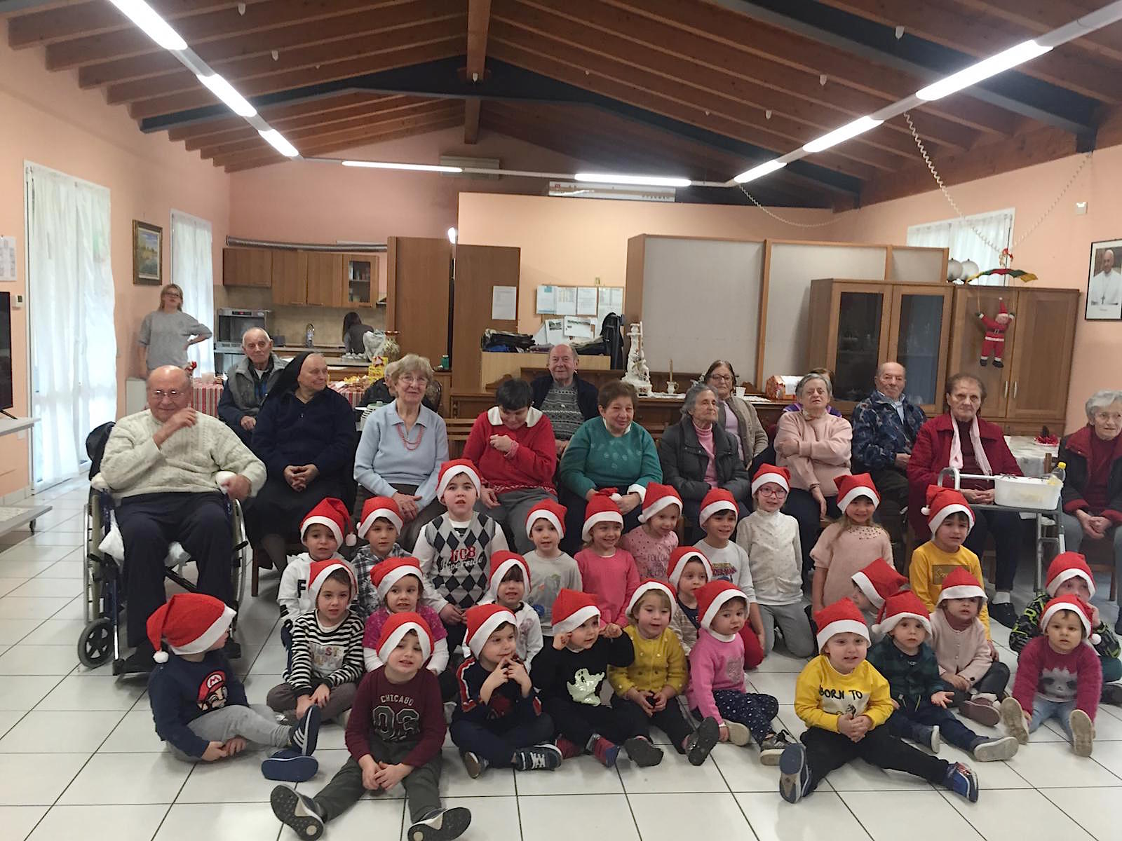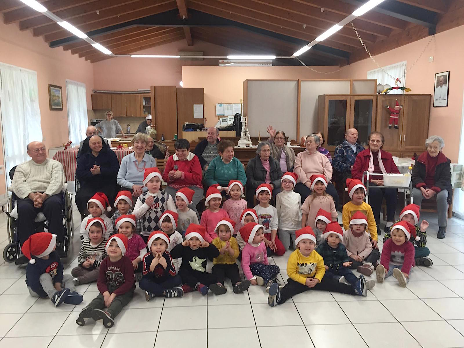 CASALMAGGIORE – E’ stata una giornata speciale quella dei nonni ospiti della Corte di Casa Giardino e dei ragazzi ‘i figliuoli’ di suor Maria Buongiorno residenti nella struttura attigua alla Corte. A renderla speciale, questa mattina, un gruppo di una trentina di alunni dell’asilo Luigi Braga di Ponteterra. I bimbi hanno intonato canti natalizi ed alleviato la giornata di anziani e ragazzi con difficoltà.