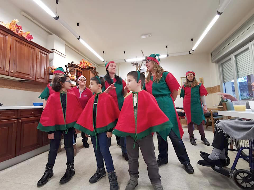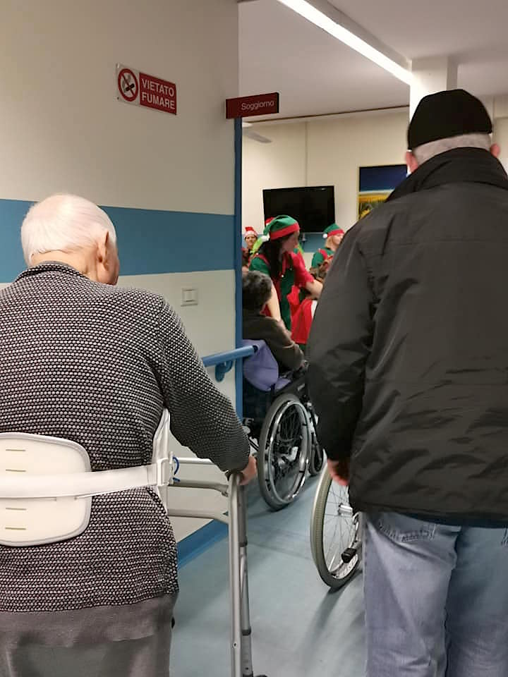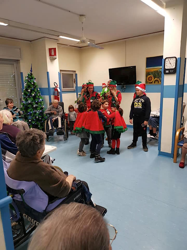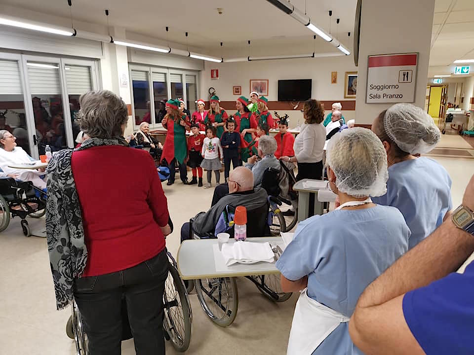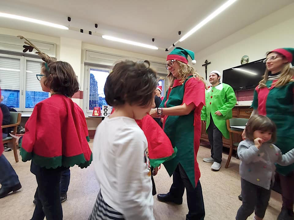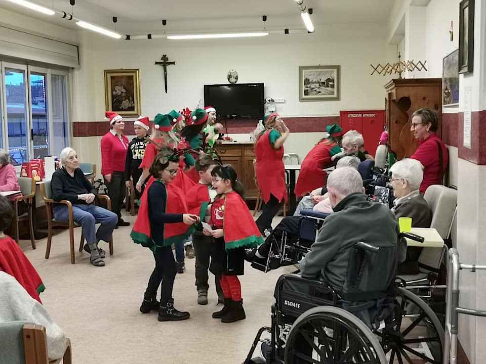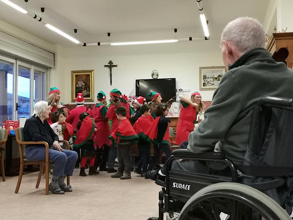Alla Casa di riposo hanno applicato alla lettera il loro credo. Vestite da elfi, vicine ai propri figli vestiti da renne, hanno messo in scena un piccolo balletto. Sono state (le mamme soprattutto) motore trainante. Lo hanno fatto su tutti i piani, in tutti i luoghi ‘comunitari’ in cui si ritrovano gli anziani. Hanno distribuito, insieme ai propri figli, biglietti d’auguri, portato un dolce, scambiato due parole, stretto mani, elargito carezze, cantato e ballato. E lo hanno fatto ‘con loro’. Una lezione – come quelle che si apprendono a scuola – sul come si possa fare qualcosa anche per gli altri e con gli altri. Una lezione data dall’esempio. La migliore maniera per imparare e crescere.