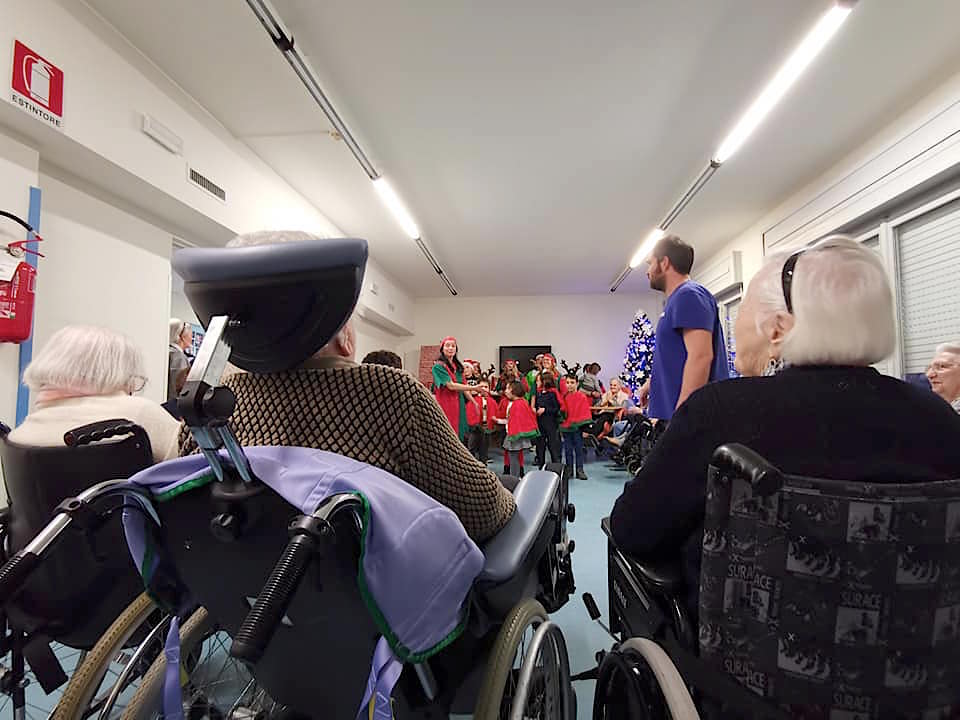 Bravissime mamme, il papà, gli animatori del Busi ed i bambini. Tanti anziani hanno gradito la presenza. Di altri, persi in qualche altro dove, non abbiamo colto alcuna reazione. Ma in tanti casi forse il non aver compreso è solo un nostro limite. In quegli occhi, in quelle mani, dietro quell’apparente muro magari qualcuno di loro ha sentito ugualmente. E dentro ne ha sorriso. E qualche nota, qualche attimo di tenerezza è entrata. Fosse stato anche e solo un brillamento d’un istante, ne sarebbe comunque valsa la pena.
