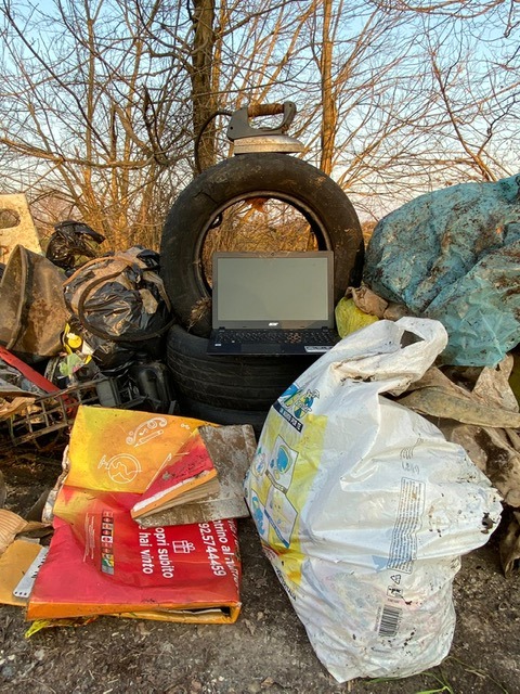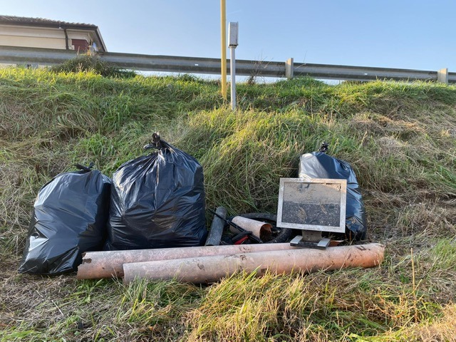 “Si trova veramente qualsiasi cosa – scrivono – soprattutto nella piazzola: rifiuti sia di chi sosta sia di chi vedendo sporcizia in accumulo, non si fa molti problemi ad aggiungerne altra. Molte cose, tra cui alcune molto nocive, sono state rinvenute in prossimità dei corsi d’acqua. Monitor, pc portatile, ferro da stiro, pneumatici, pentole, quantità indescrivibile di rete metallica, cestino in ferro, accessori vivaistici, lamiere, carta catramata, pezzi di auto incidentate, carica batterie, tubi e canaline, reti da pesca di bracconieri, cassette di plastica, teli di plastica, coperte, asciugamani, scarpe e altri indumenti, liquido per radiatori, fustini vari e poi i più tradizionali pacchetti di sigarette, bottiglie d’acqua, di birra, di vino, lattine”.