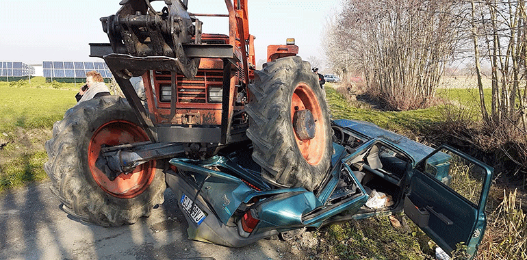 Con l'auto sotto le ruote del trattore, coppia di anziani miracolata a Viadana