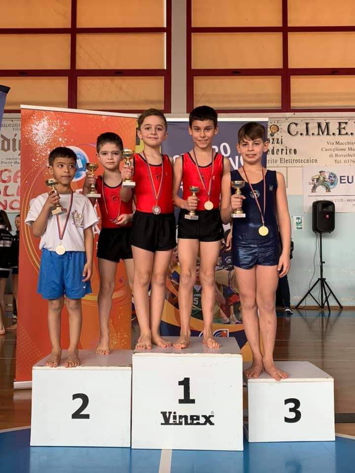 Sul fronte maschile tutti e cinque i piccoli ginnasti di Gymnica salgono sul podio: Nicolò Gobbi è primo nella categoria lupetti medium seguito da Chahla Zaid; per la categoria Tigrotti medium sale sul gradino più alto del podio Federico Gobbi e ancora per la categoria Tigrotti Large Alessandro Mazzara si piazza al primo posto seguito da Mattew Ziliani Zangrossi.