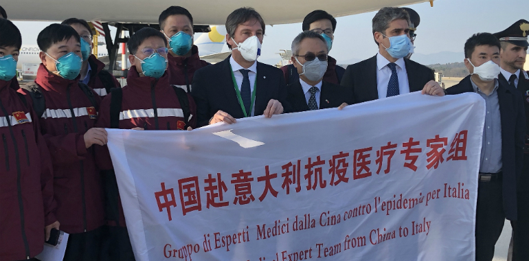 Insieme alle proprie competenze, il personale cinese ha posato con uno striscione di speranza che riportava una frase di Seneca: “Siamo onde dello stesso mare, foglie dello stesso albero, fiori dello stesso giardino”. FOTOGALLERY