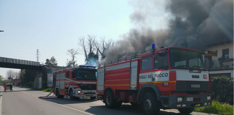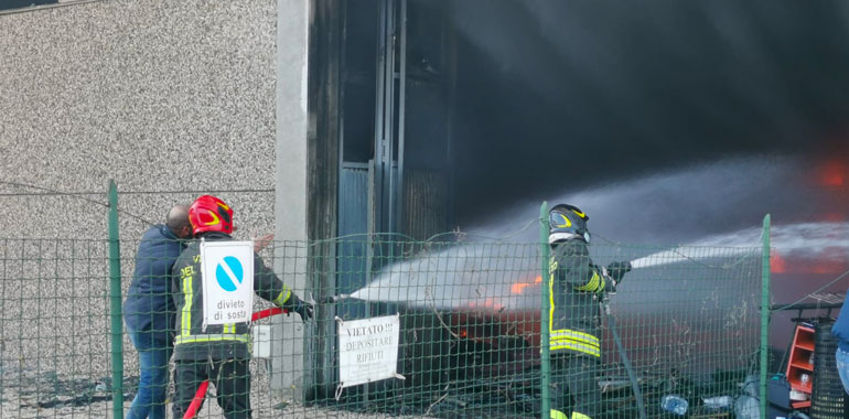 Deposito a fuoco, incendio domato dopo sette ore E l'Asolana ha riaperto alle 21.30