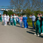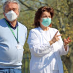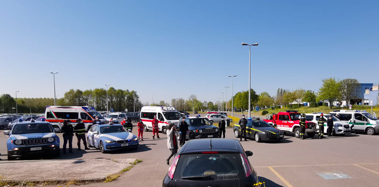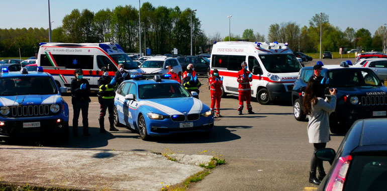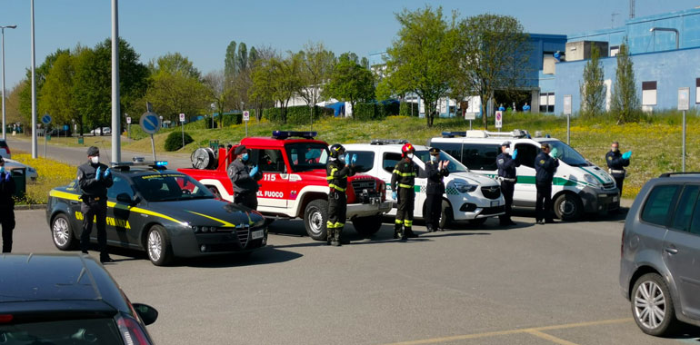 Un grazie scandito dal suono assordante delle sirene che entra nelle carni e alla fine scatena, spontaneo, un applauso degli uni nei confronti degli altri. Manca l’abbraccio ma c’è quello che stringe l’anima: ed è comunque fortissimo.