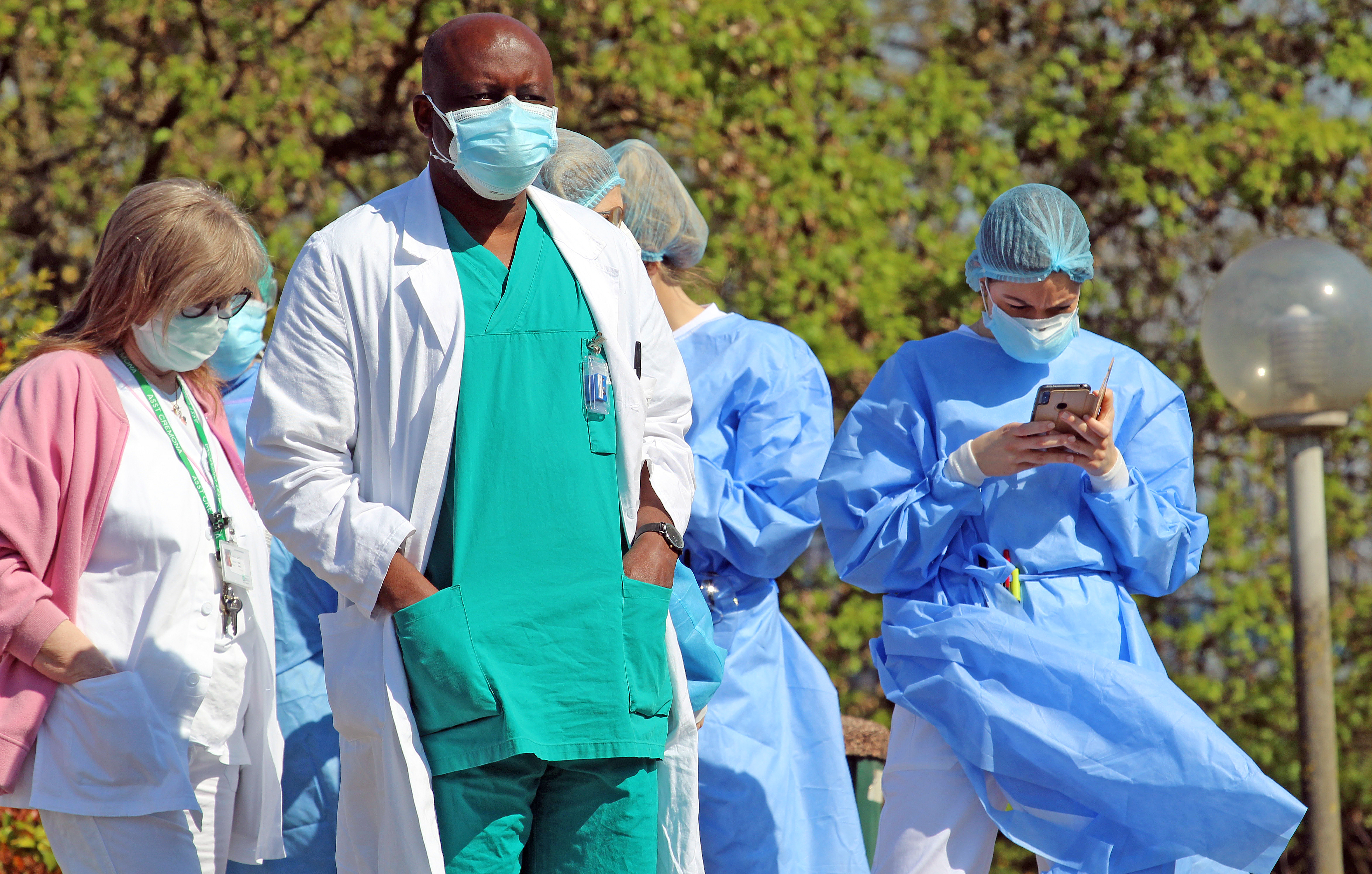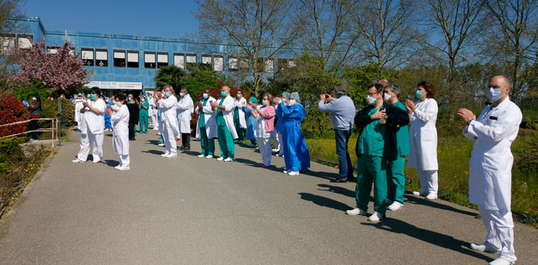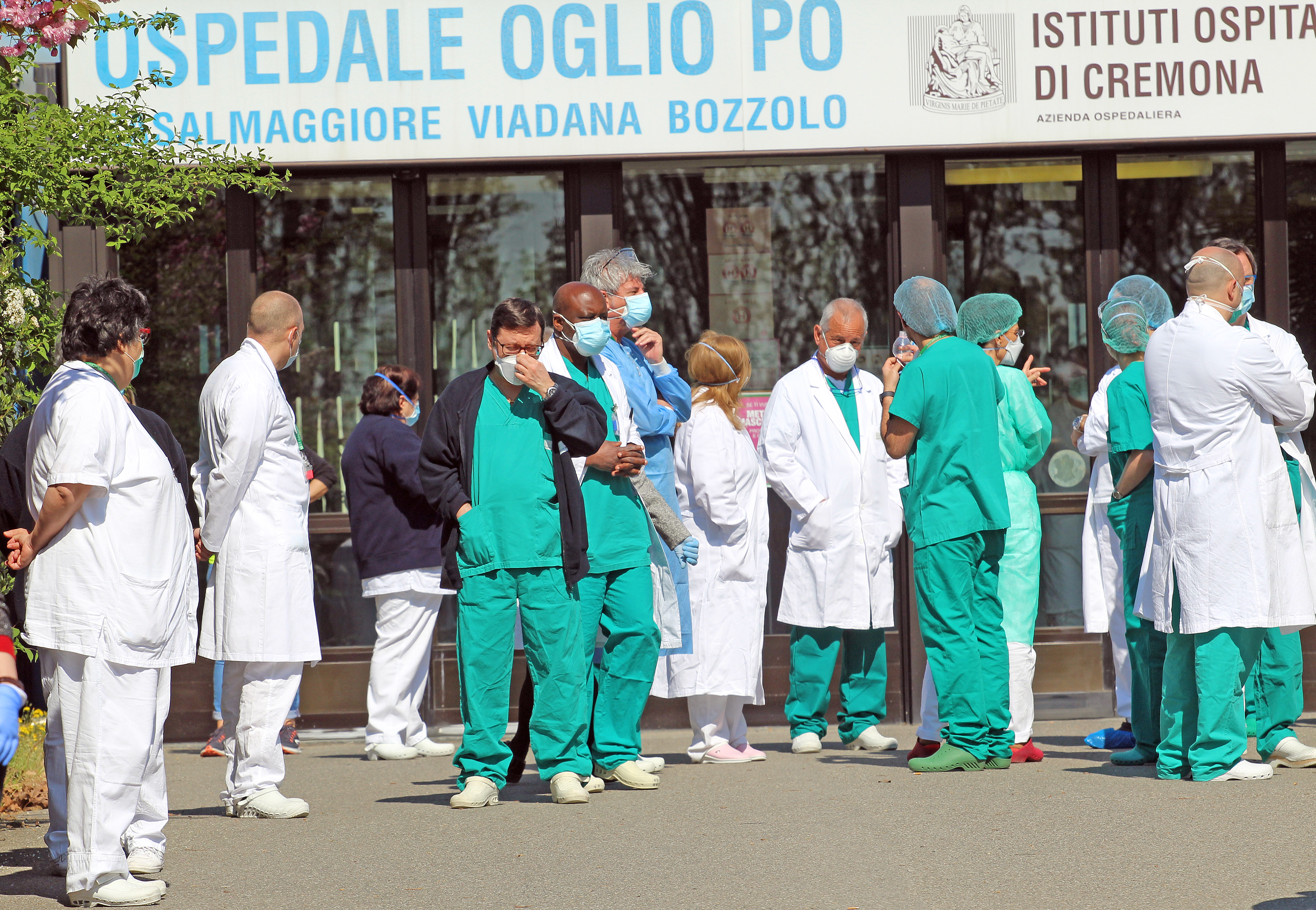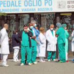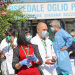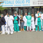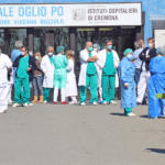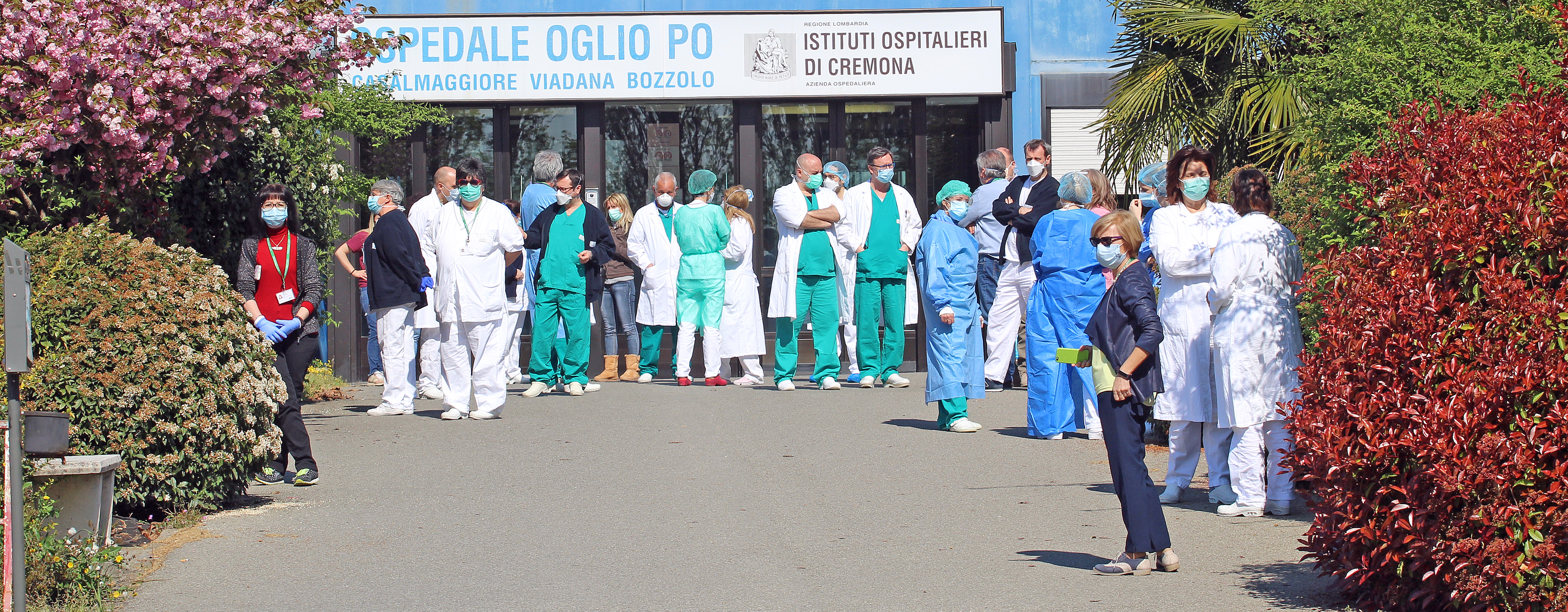Fuori, sulla salita che porta all’accesso principale dell’Oglio Po ci sono loro. Medici, infermieri, inservienti. L’anima dell’Ospedale. E in strada ci sono altri professionisti in divisa: carabinieri, poliziotti, finanzieri, vigili del fuoco ed uomini della polizia municipale, oltre agli uomini della Protezione Civile, Croce Rossa e Padana Soccorso. Uniti in un abbraccio che – anche se non si può dare – c’è.