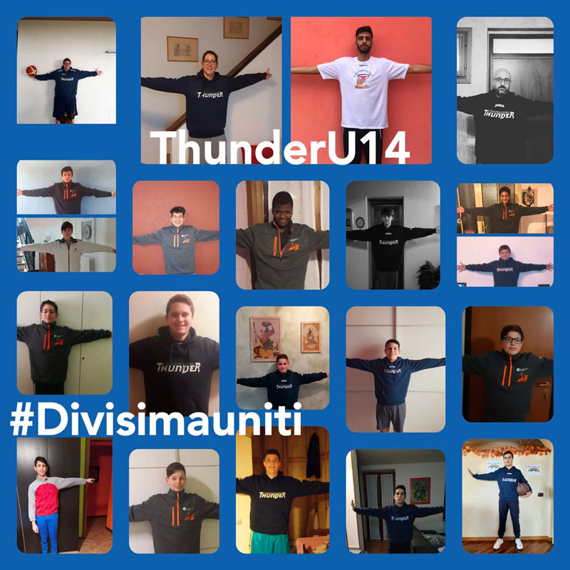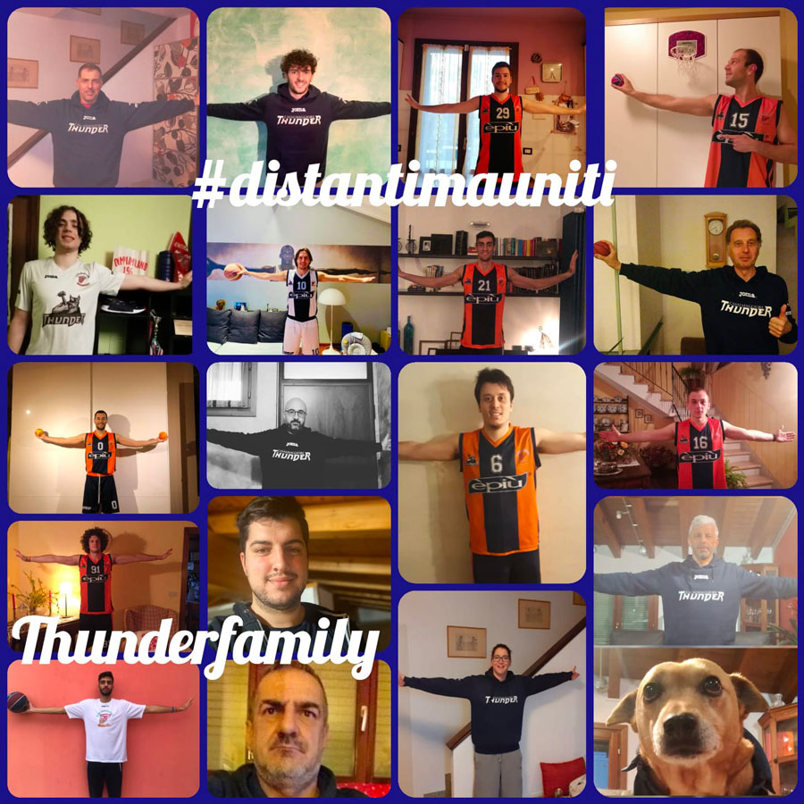 Tante le società che, riprendendo uno spot televisivo che vede protagonisti i principali atleti olimpici e paralimpici italiani (alla campagna, sui social, ha preso parte anche il canottiere campione olimpico Simone Raineri), hanno realizzato queste fotografie d’insieme, chiedendo ai ragazzi iscritti e anche ai dirigenti di spedire una fotografia da casa, dunque senza rischio alcuno. Il Basket Thunder Casalmaggiore lo ha fatto, facendo partecipare tutte le varie squadre del settore giovanile e coinvolgendo anche i genitori, primi tifosi: così ecco il collage delle mamme e quello dei papà, tutti rigorosamente in tenuta sportiva.