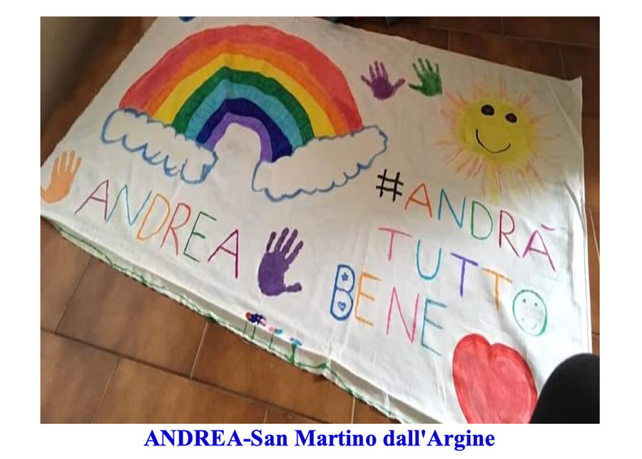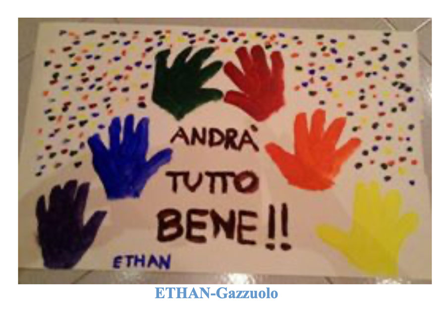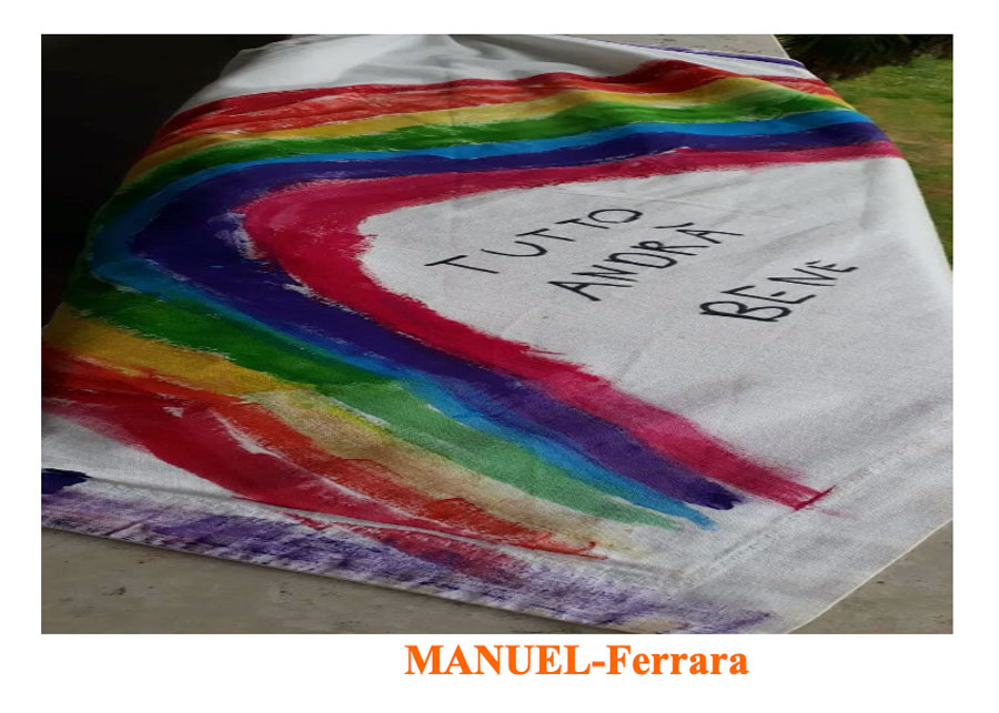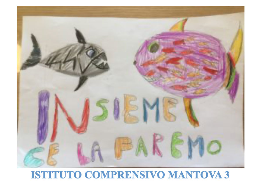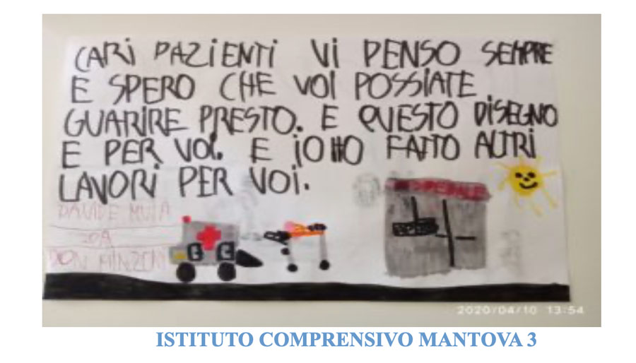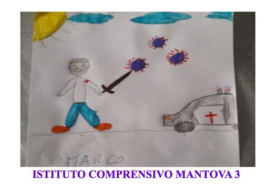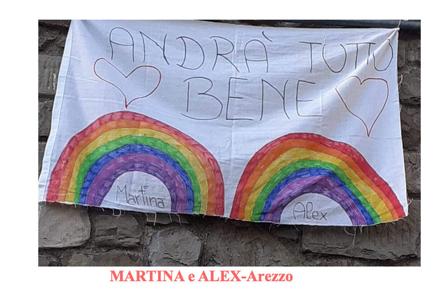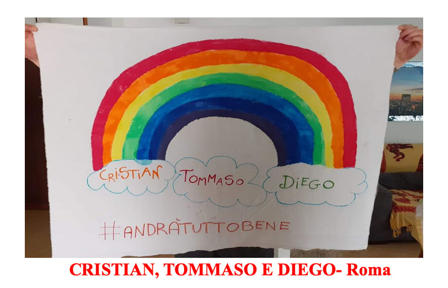 “Cartelloni che sono apparsi – spiega Benedetta – sul balcone del Municipio di Bozzolo, il mio paese (il cui ospedale intitolato a Don Primo Mazzolari si è riconvertito per ospitare malati Covid 19) ed affissi ai serramenti delle abitazioni e alle vetrine di molti paesi del territorio. Alla richiesta di mostrare sulla mia pagina Facebook i lavori realizzati dai bambini durante questo periodo di isolamento, la risposta è stata ampia e non circoscritta al solo territorio mantovano o cremonese. Da qui l’idea di raccoglierli e pubblicarli insieme per dimostrare la grande forza comunicativa di queste immagini: troverete gli arcobaleni di Alex e Lorenzo, disegnati per la finestra di casa e per il negozio da parrucchiera di mamma Elisa; quello della dolcissima Viola che lo ha attaccato sulla sua casetta dei giochi come a voler dirci “state a casa che siete al sicuro!” felice di avere vicini entrambi i genitori scrive mamma Monica per farsi coccolare e invente insieme nuovi giochi. Emily lo ha realizzato con tante manine colorate insieme a mamma e papà mentre quello di Nicholas è un tenerissimo collage di carta colorata, fiori e manine. Nonna Barbara mi ha mandato il disegno del suo nipotino Dante che vive a Brescia e rappresenta il “Signor Corona virus” come un sovrano comprendendone la potenza dirompente. Michele e Matilde hanno inserito vicino al loro arcobaleno la bandiera italiana per incoraggiarci e dirci che il nostro Paese ce la farà! Mamma Rita mi racconta che il suo Thomas ha voluto ringraziare chi lavora in ospedale e aiuta le persone a stare meglio, il fratello Nikolas ha disegnato un bambino con la mascherina rispettoso delle regole in contrapposizione ad un altro che non la indossa uscendo di casa, definendolo “furbetto”. Altri lavori di forte impatto emotivo sono stati realizzati dai bambini di diverse età dell’Istituto Comprensivo di Mantova 3. Ringrazio Daniela Cancellieri, l’insegnante che me li ha segnalati e fatti scoprire. Non vado oltre perché saranno le immagini a parlare e farci emozionare. Bambini diversi con la stessa voglia di raccontare in modo semplice la complessità della vita, con la loro creatività ci trasmettono grande coraggio rendendoli speciali… messaggi che mi hanno commosso e che ho scelto di condividere con voi tutti. Ed è pensando a loro e ai loro arcobaleni che ho scritto queste poche righe”.