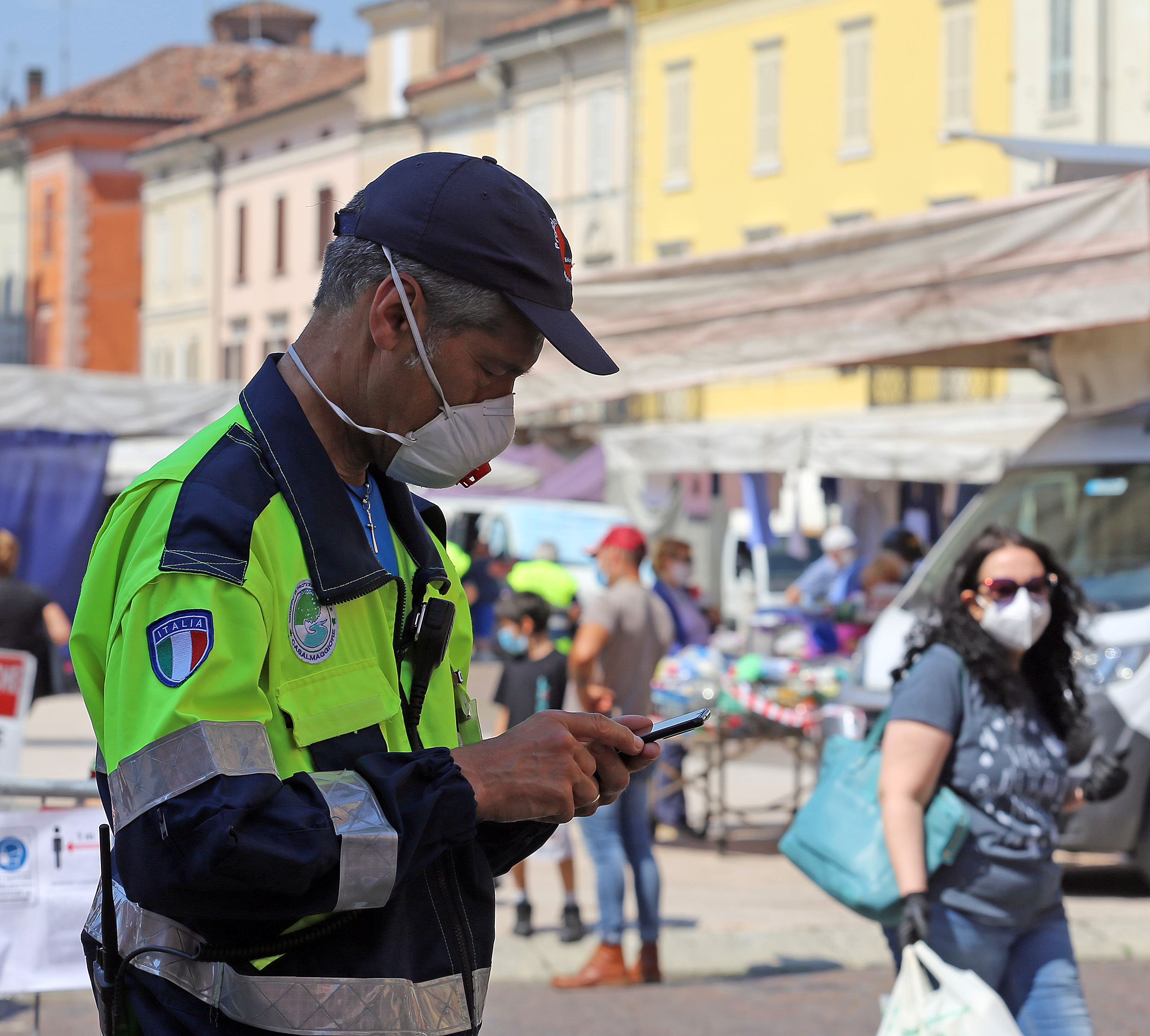 Ma merito grande anche allo sforzo congiunto di Polizia Municipale e Protezione Civile che hanno vegliato discretamente affinché tutto filasse liscio. Pochissimi i richiami: qualche gruppetto un po’ troppo ravvicinato, qualche mascherina portata un po’ così, a mo di copribocca, di reggi mento o di orecchino ma nulla più. In piazza, questa mattina, a vegliare sul buon ordine, anche il comandante della Polizia Municipale Silvio Biffi e la vice comandante Angela Acquaroni.