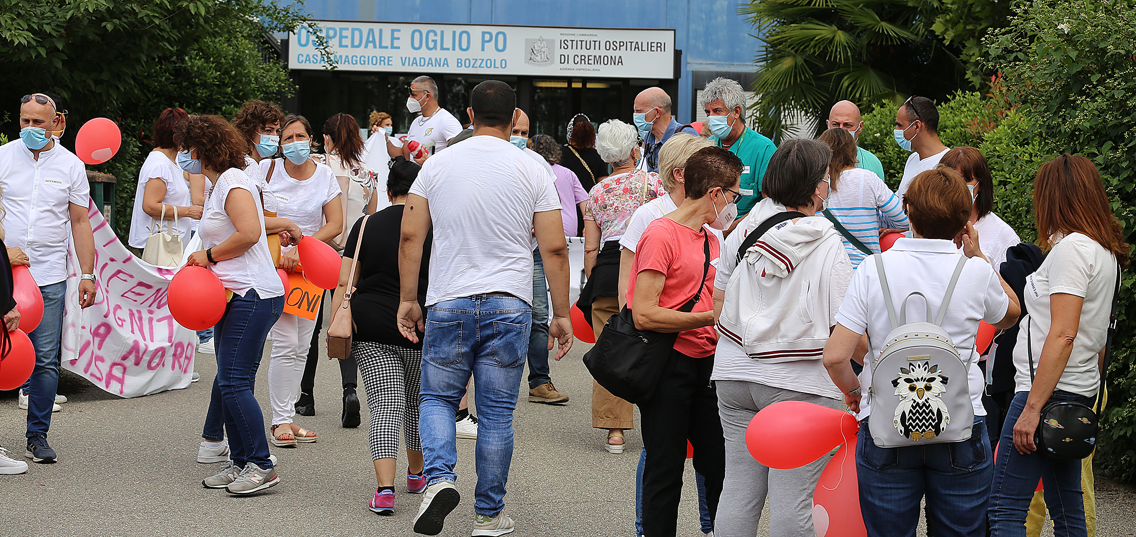 A Casalmaggiore l’appoggio è giunto anche dal sindaco Filippo Bongiovanni, in piazza con gli infermieri stessi (trovate il suo messaggio nel video annesso al pezzo, ndr), tra striscioni, slogan e megafoni (oltre alle immancabili mascherine), e dalle minoranze del Listone con Maurizio Toscani e di Casalmaggiore la Nostra Casa, con Mario Daina e Pierluigi Pasotto. I consiglieri di opposizione hanno mandato un messaggio: “La nostra partecipazione e presenza questa mattina è prima di tutto un atto di solidarietà e di ringraziamento per tutto ciò che gli infermieri dell’Oglio Po hanno fatto in questi mesi ma non scordiamo lo che fanno sempre. Allora come gruppo politico di minoranza il nostro dovere morale è di essere al fianco sempre degli infermieri  ma in modo concreto, per cui continua senza tregua la nostra battaglia per l’Oglio Po, un ospedale è prima di tutto un’organizzazione umana a cui va riconosciuta concretamente professionalità e ritorno economico adeguato. È ora dalle parole di passare ai fatti, senza gli infermieri e gli addetti alle pulizie oltre che ai medici cosa sarebbe successo?”.
