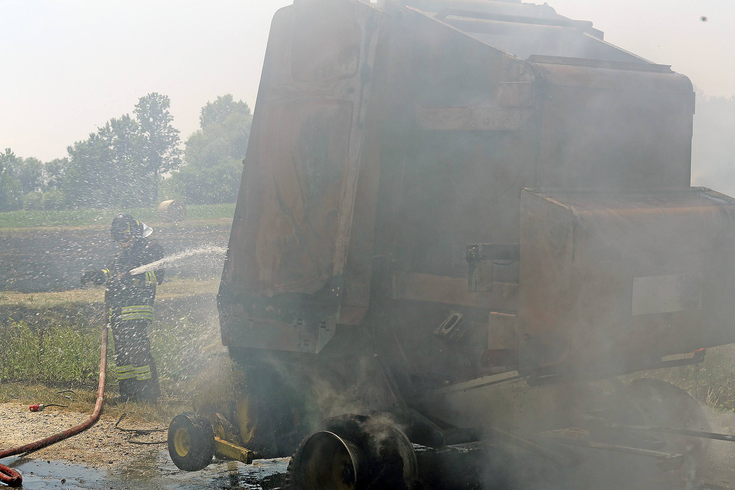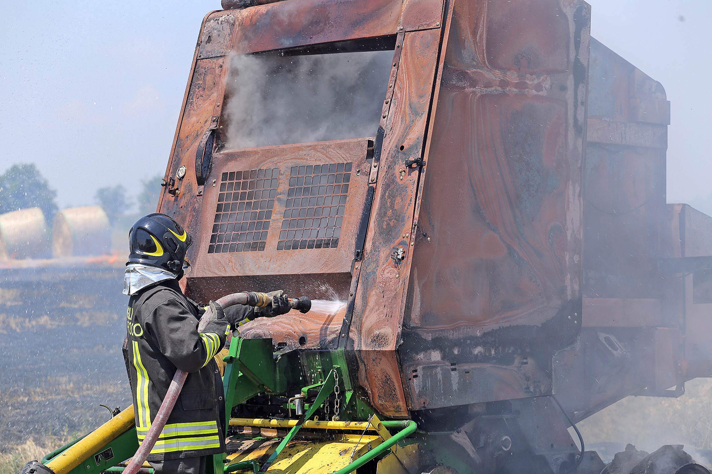 MARTIGNANA DI PO – Stava imballando il fieno quando ad un certo punto si è accorto delle fiamme nel cassone. Ha provato, con tutte le sue forze, a cercare di allontanare il pericolo e salvare il salvabile: “Ma a un certo punto non ce la facevo più”. L’agricoltore ha fatto appena in tempo a portare il mezzo sulla sterrata prima che fosse avvolto dalle fiamme. Fiamme che poi si sono propagate dall’altra parte del campo. Ha perso una 30ina di balle di fieno, forse qualcuna in più. Ma quello che è successo poi difficilmente se lo dimenticherà.